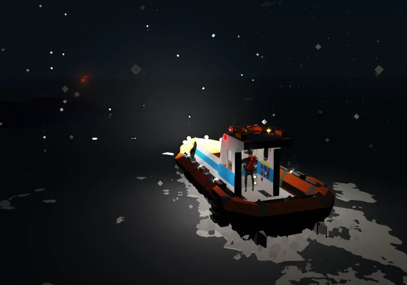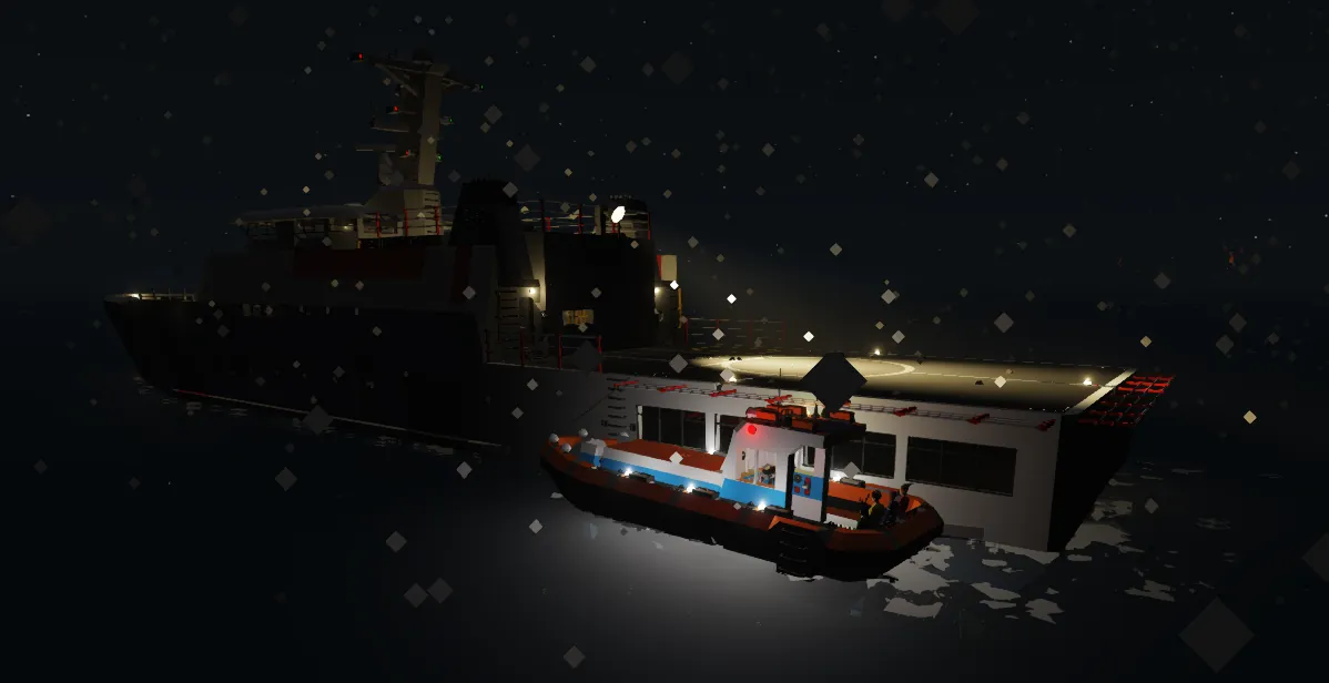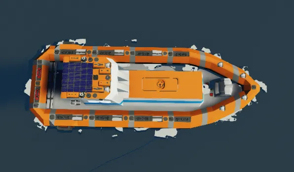 This is a small search and rescue vehicle that is inspired by the Annie Poulisse from the dutch coastguard (knrm), it has a hatch in the front with tools and has a top speed of about 66 km/h. You can angle the stern of the ship with a throttle, in storms i reccommend putting it on +30-50 and for top speed about -10-40, it is pretty stable. It has 4 bildge pumps, heaters, 8 seats (not counting helm) and can withstand waves of up to 70% wind (it is very light so it will struggle with 70+ winds), it also has a large winch at the front that is used for the anchor but can be used for towing. It has navigation lights, spotlights, emergency lights, deck lights, and cabin lights. Powered by 2 small engines and 3 electric motors.