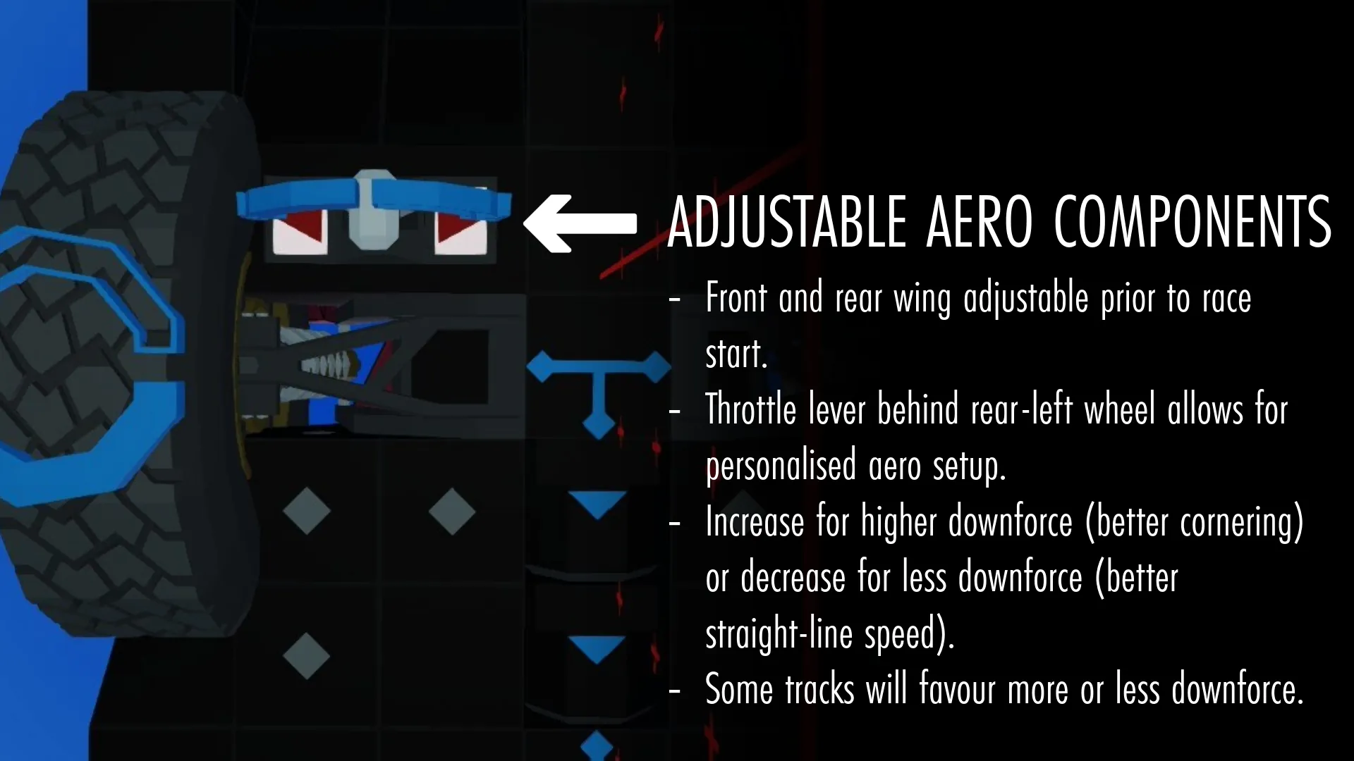 - The blue parts on the default car are where your sponsors/designs go.