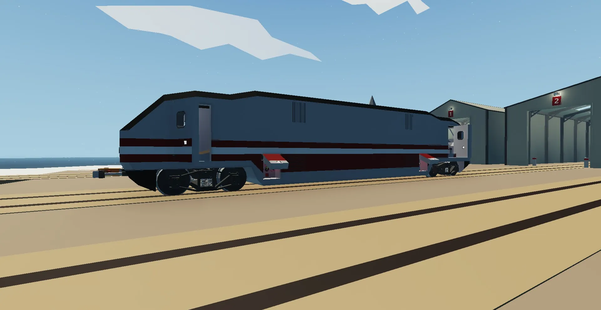 There is a single control lever; a positive value moves you forward (if you press the reverse button, it moves backward), and a negative value brakes. To stop the train, ensure the lever is in the -0.80 position or lower.