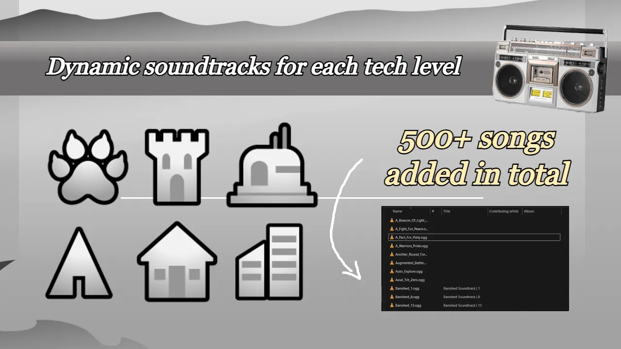 [*] Custom functionality for complete soundtracks for each tech-level that change as you move between them.