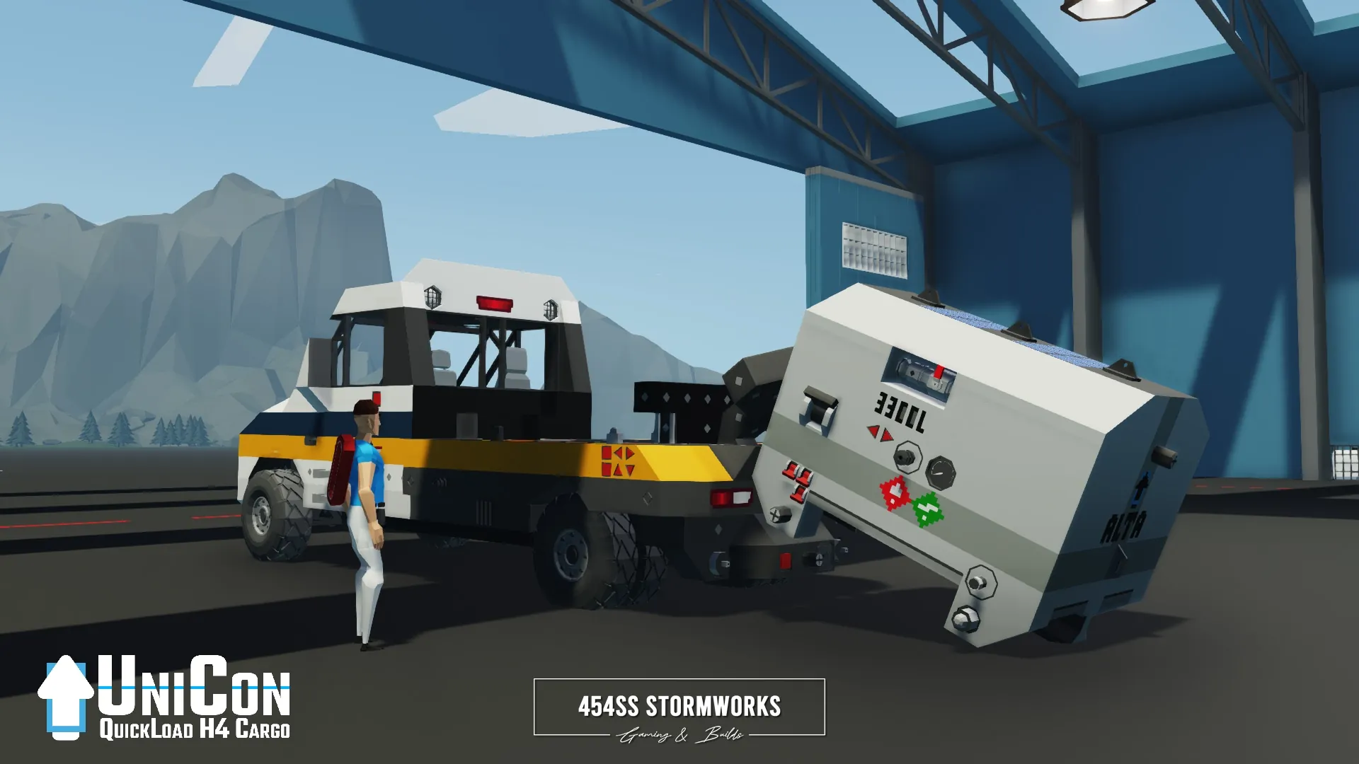 Templates and sample of the UniCon standard of quick load cargo system. Similar to hooklift style cargo attachments for trucks, adapted to many of my previous and future creations. Can be stowed in helicopters, placed on ships and transported with small vehicles. Works with a variety of loaders and compatible with my H4 connector system.