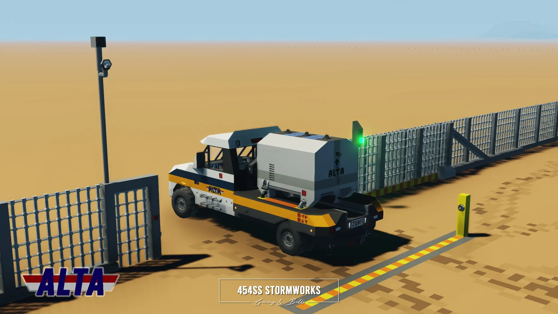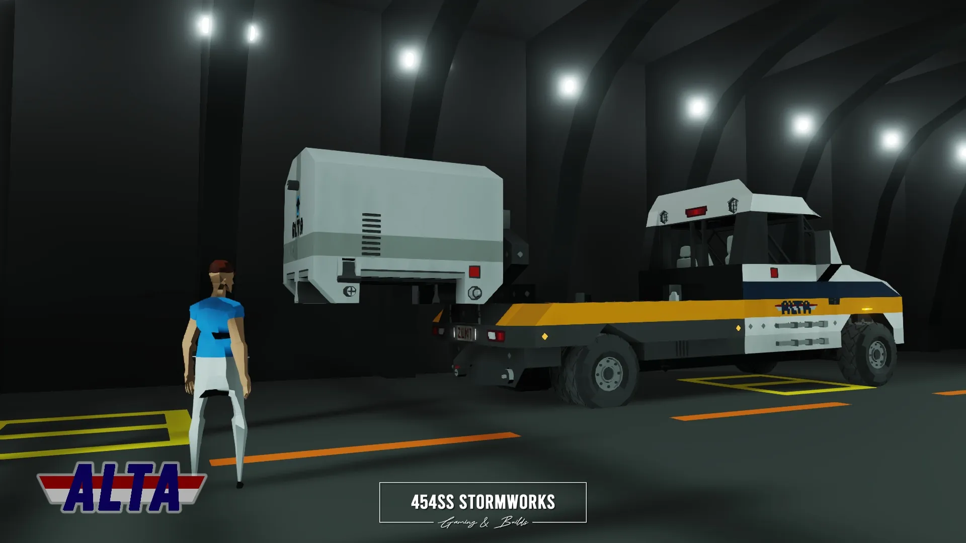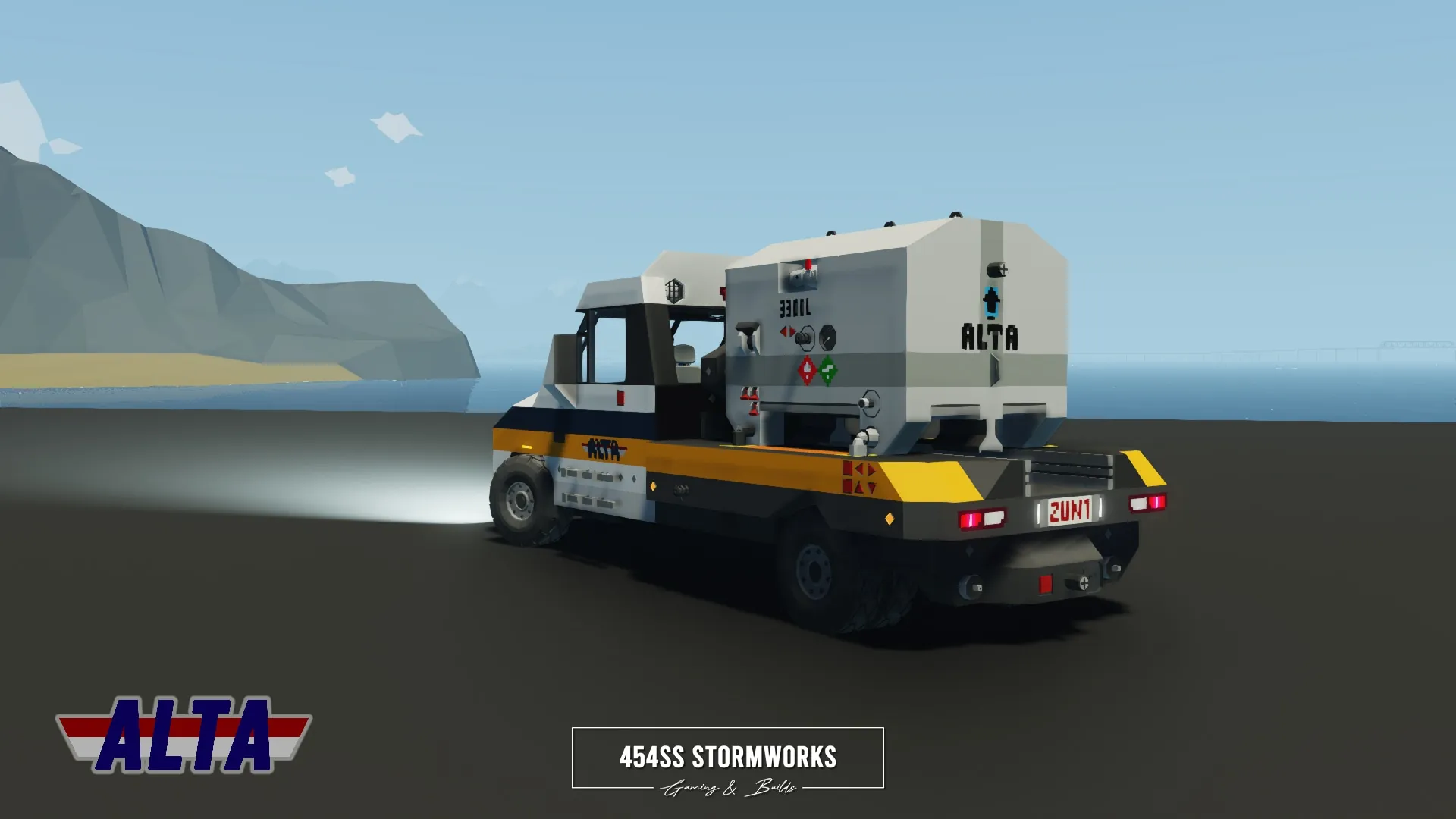 The Buckel Stampede is a Class 6 medium-duty commercial-grade truck, produced both as a commercial and consumer vehicle since 1989, featuring a supercharged 12 cylinder engine, massive 2200 L fuel tank, towing-geared transmission and hexasteer dually rear axle is capable of towing up to 25,000 lbs. This particular unit is owned by ALTA Industrial Corp., a (fictional) mining, drilling and transportation company. It features a UniCon quick Lift system, allowing easy loading of UniCon containers.