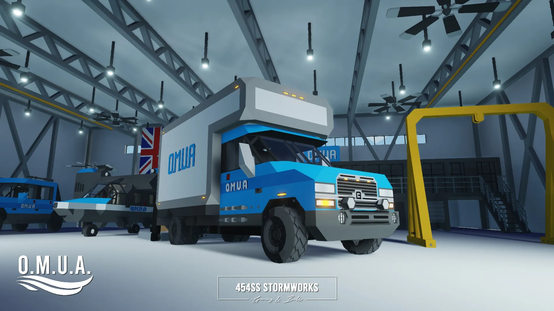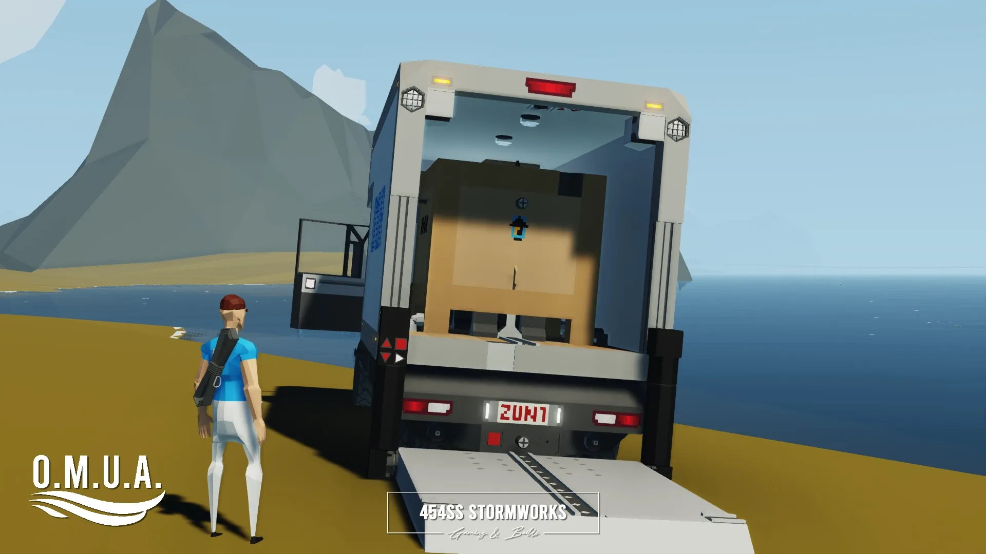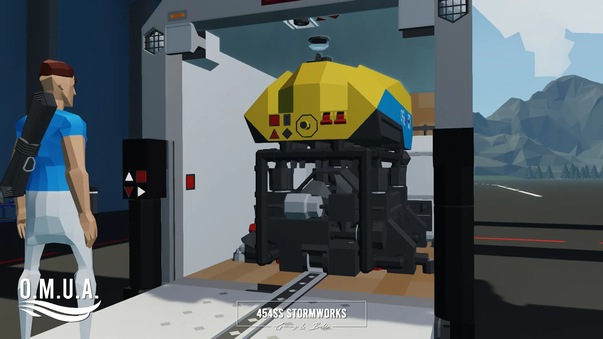 The Buckel Stampede is a Class 6 medium-duty commercial-grade truck, produced both as a commercial and consumer vehicle since 1989, featuring a supercharged 12 cylinder engine, massive 2200 L fuel tank, towing-geared transmission and hexasteer dually rear axle is capable of towing up to 25,000 lbs. This particular unit is owned by OMUA (Oceanic Marine Underwater Agency), a (fictional) multinational marine and research agency. It features a cargo box with lift gate and winch, allowing easy manual loading of UniCon containers, small minisubs and ROV equipment.
