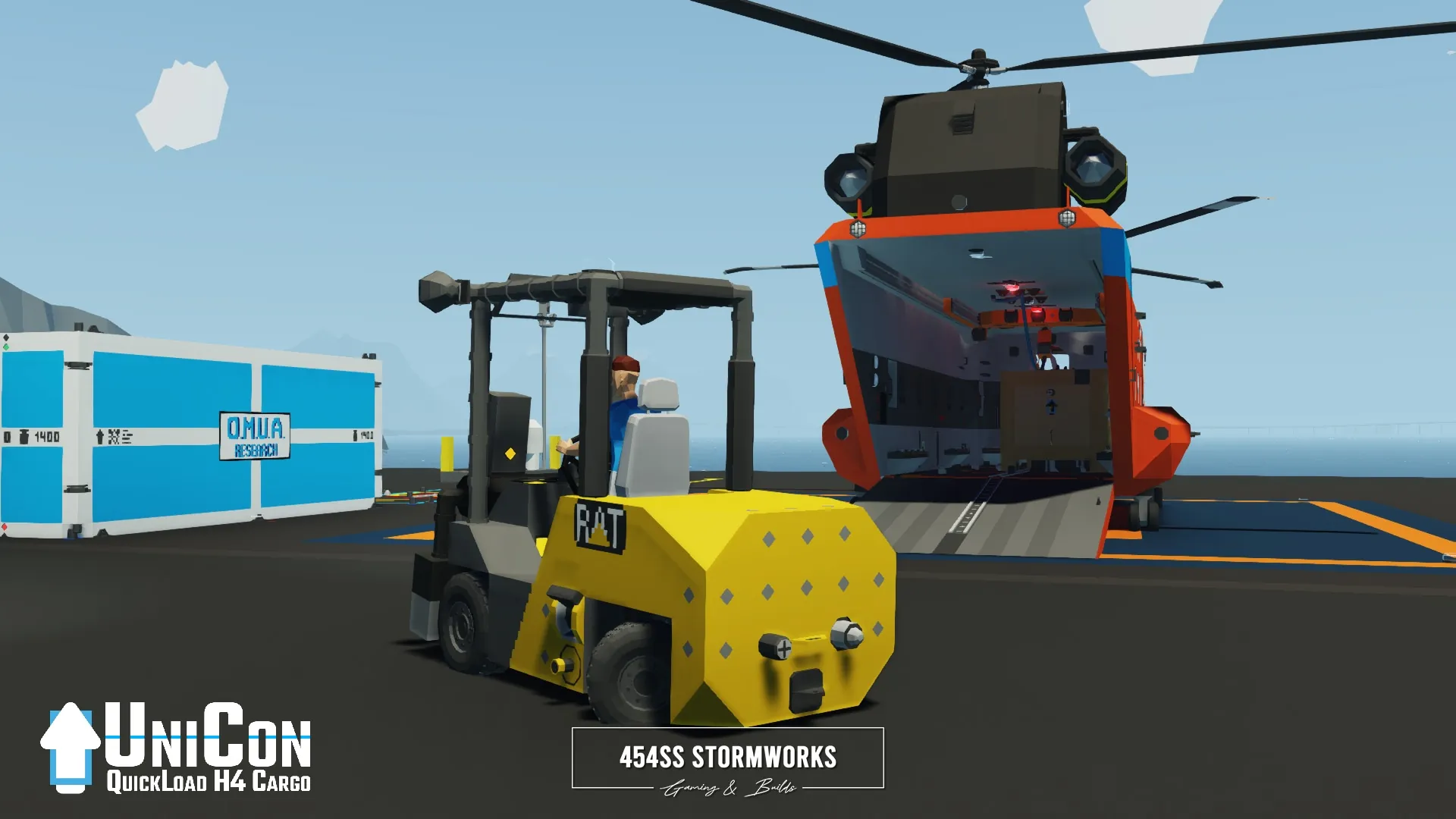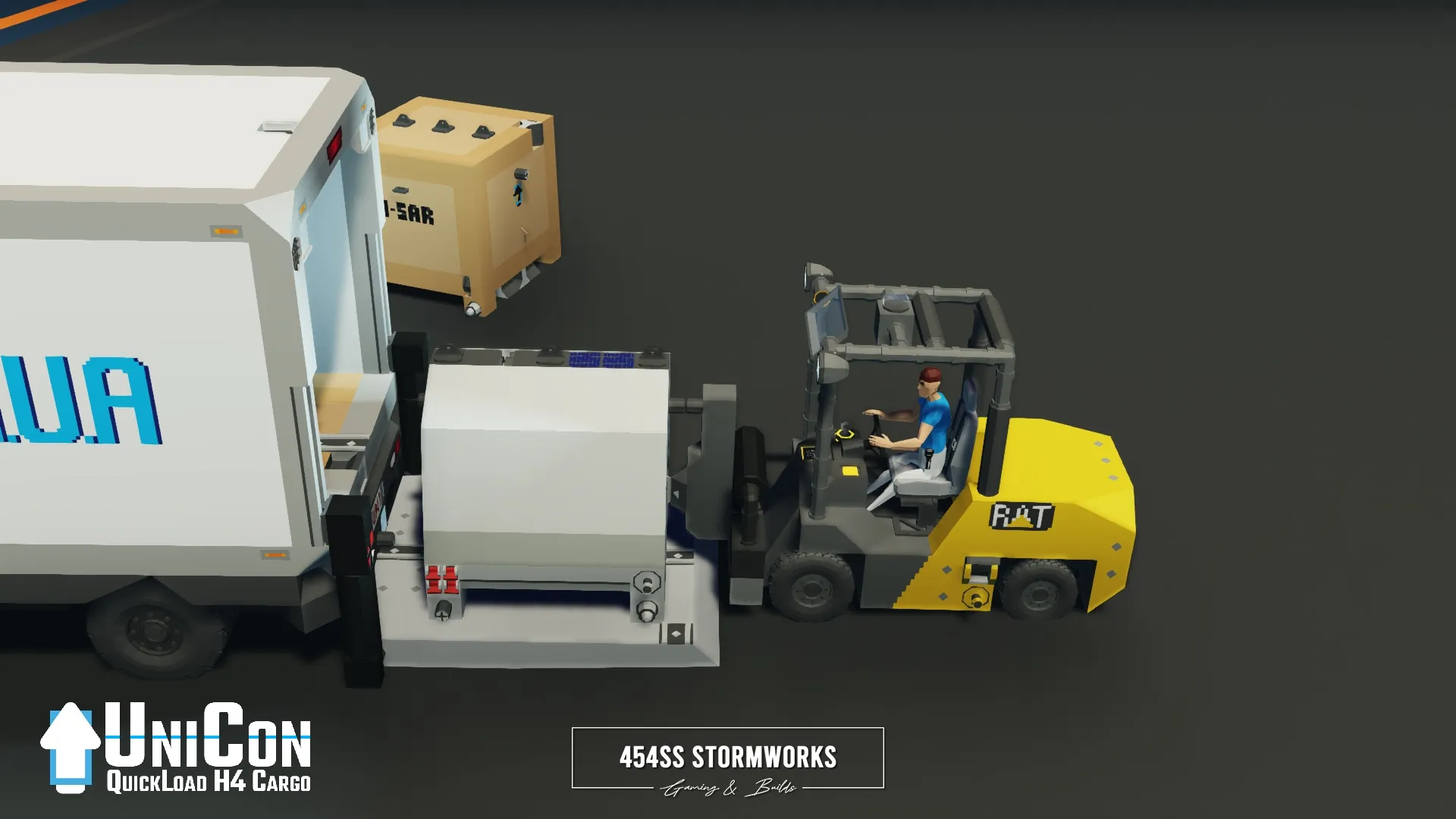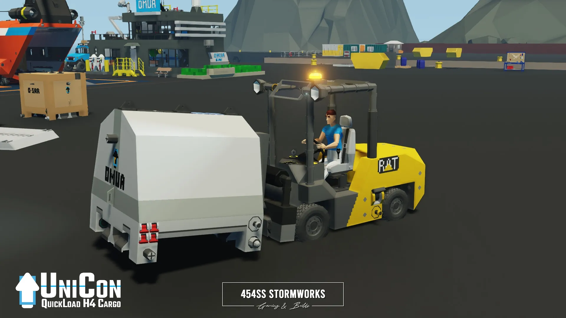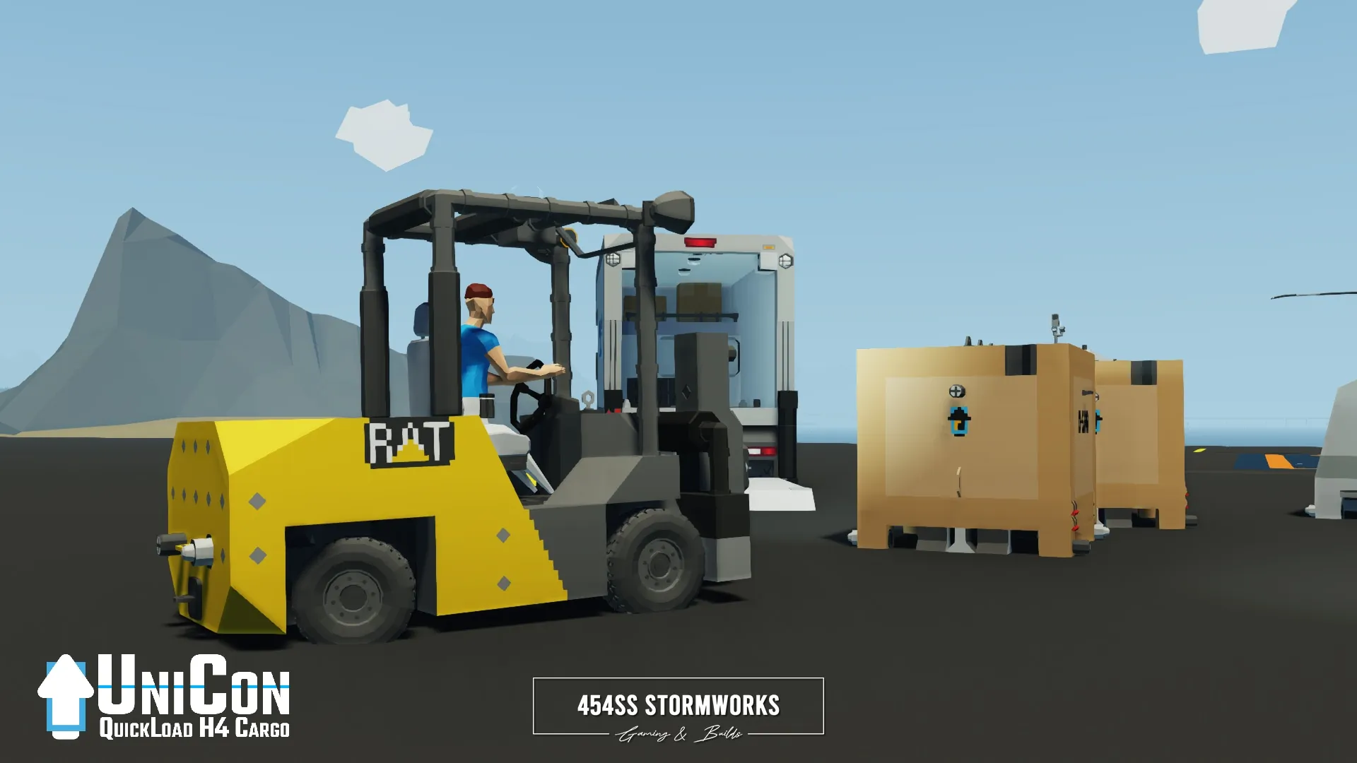 The RAT UniLoad-E 10 is an electric forklift based front loader specially modified to have a UniCon grabber on the front. This allows easy UniCon cargo and crate pairing.
