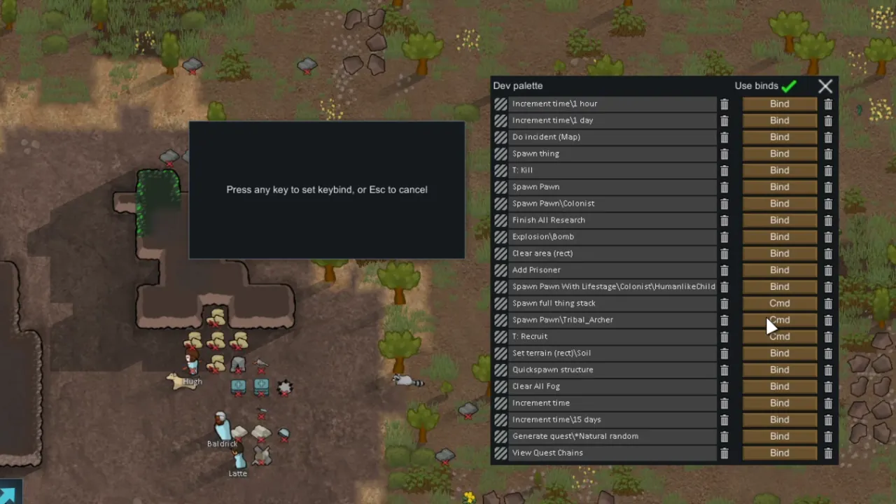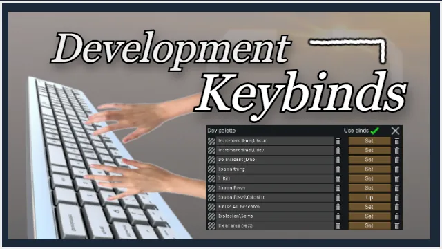 This is a mostly developer/tinkerer focused mod that lets you bind commands from your developer palette to keys on your keyboard. There is also a mod option to let you have the binds work even outside of developer mode.