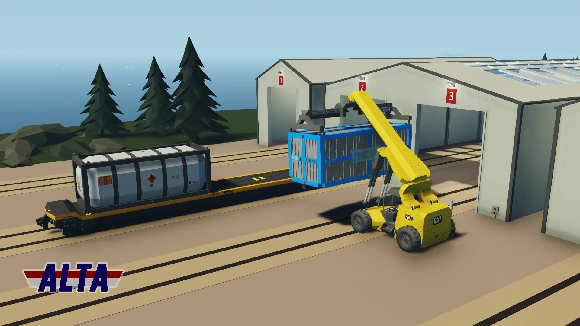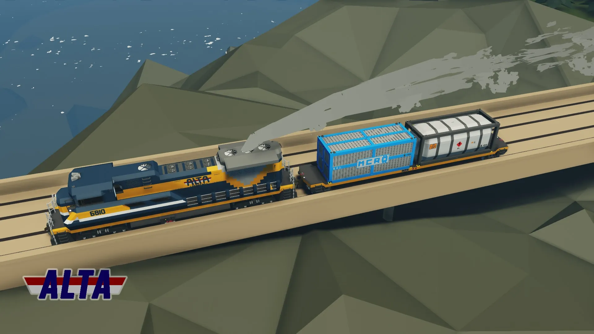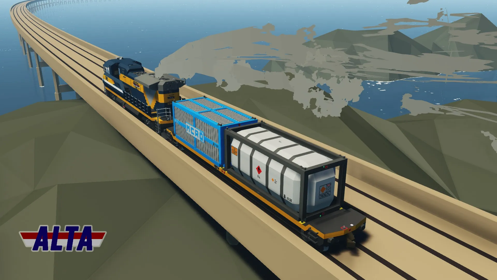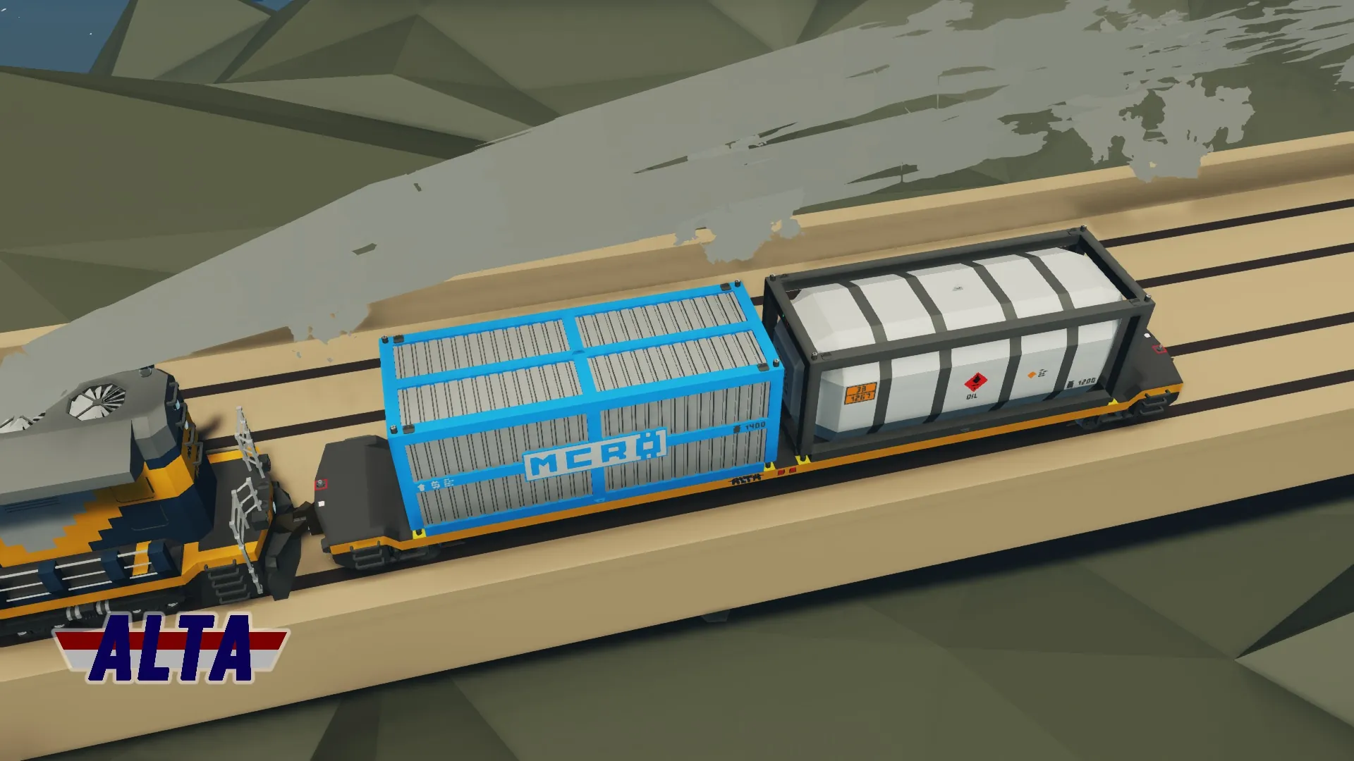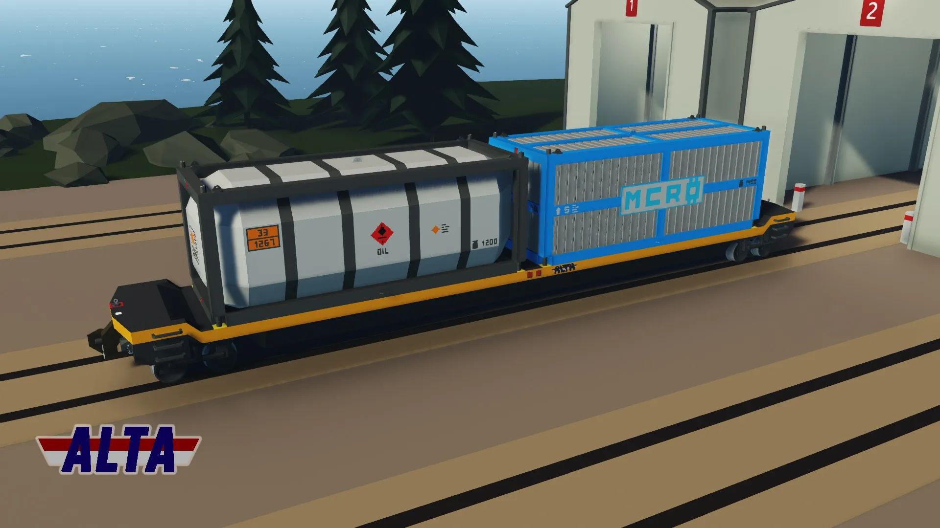 ISO/UniCon container railcar owned by ALTA Corp. For full functionality, the locomotive must be RCU Standard Compatible.