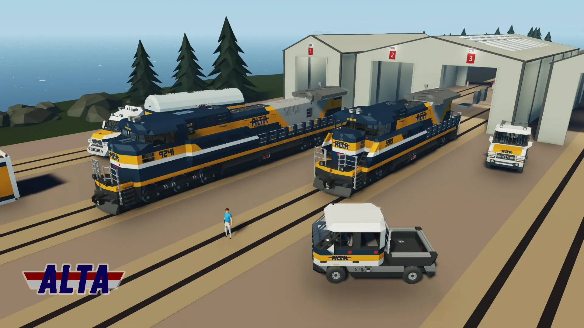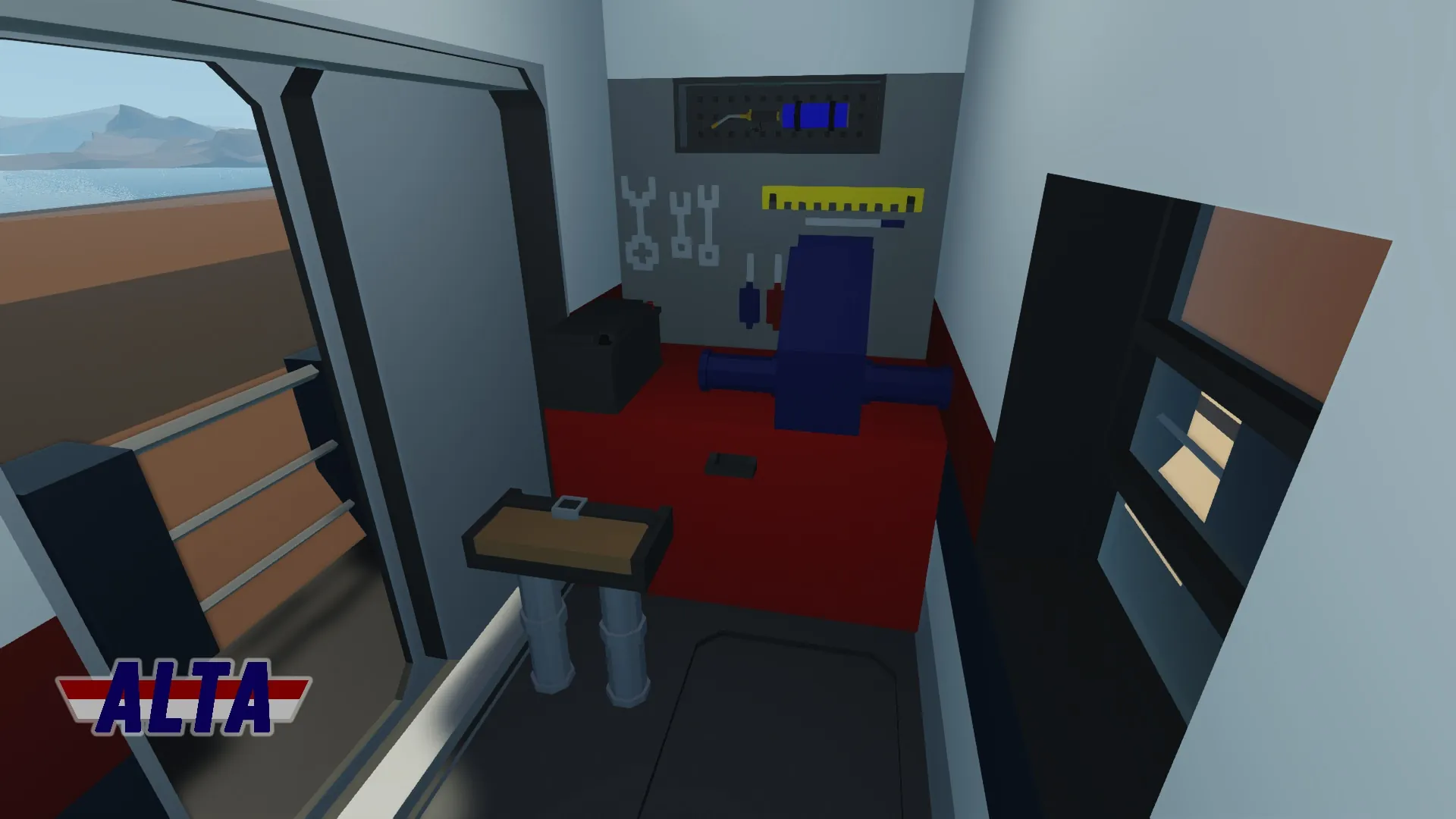 [*] Crew areas: Cab, crew lounge, stateroom, engine room, maintenance room