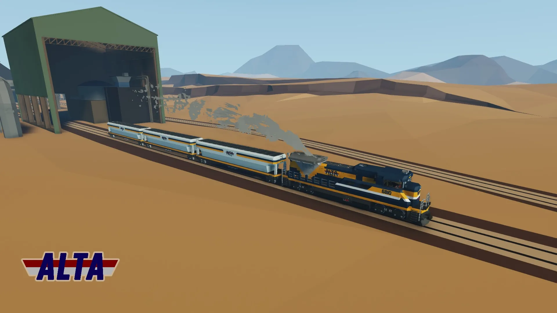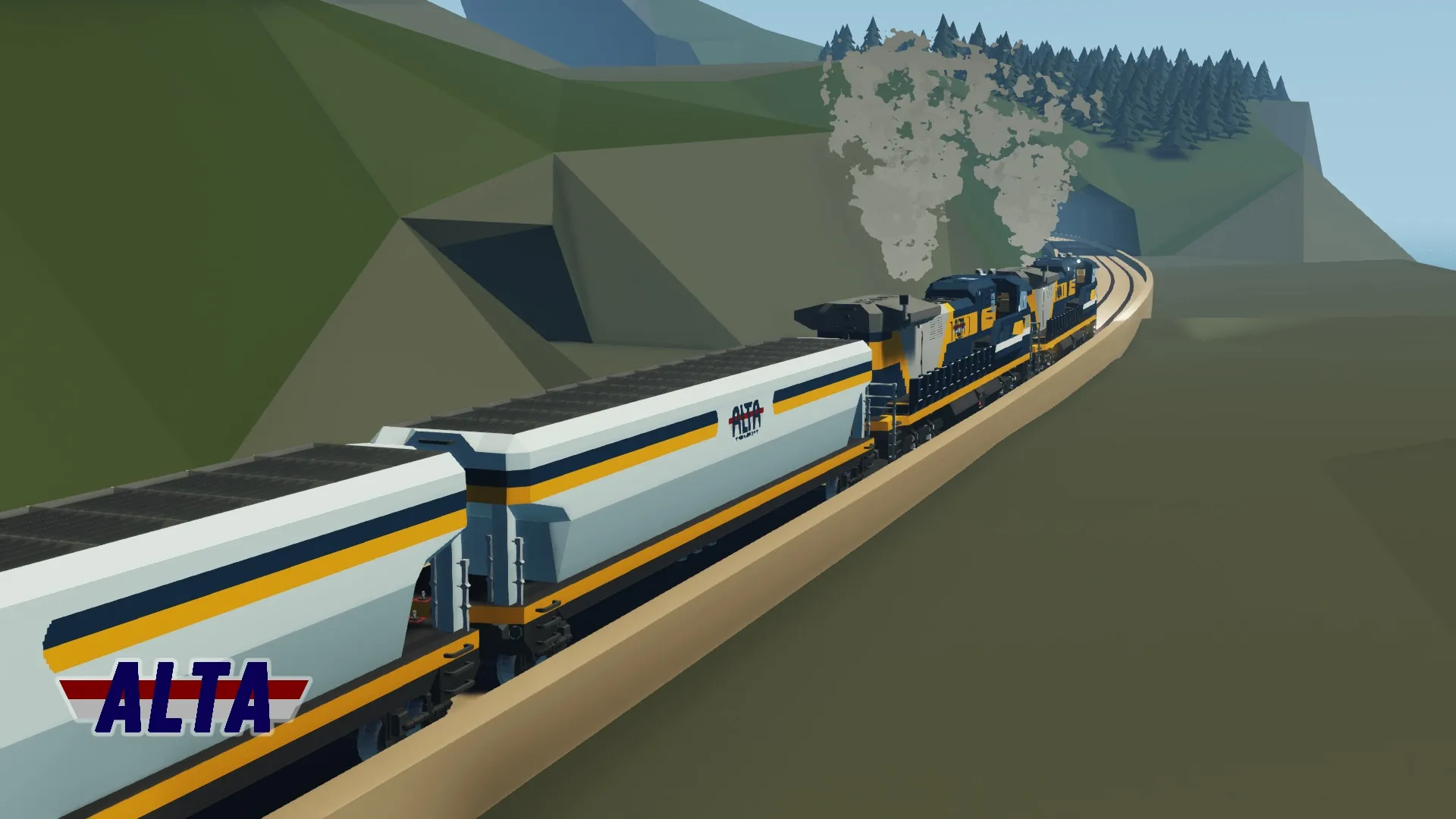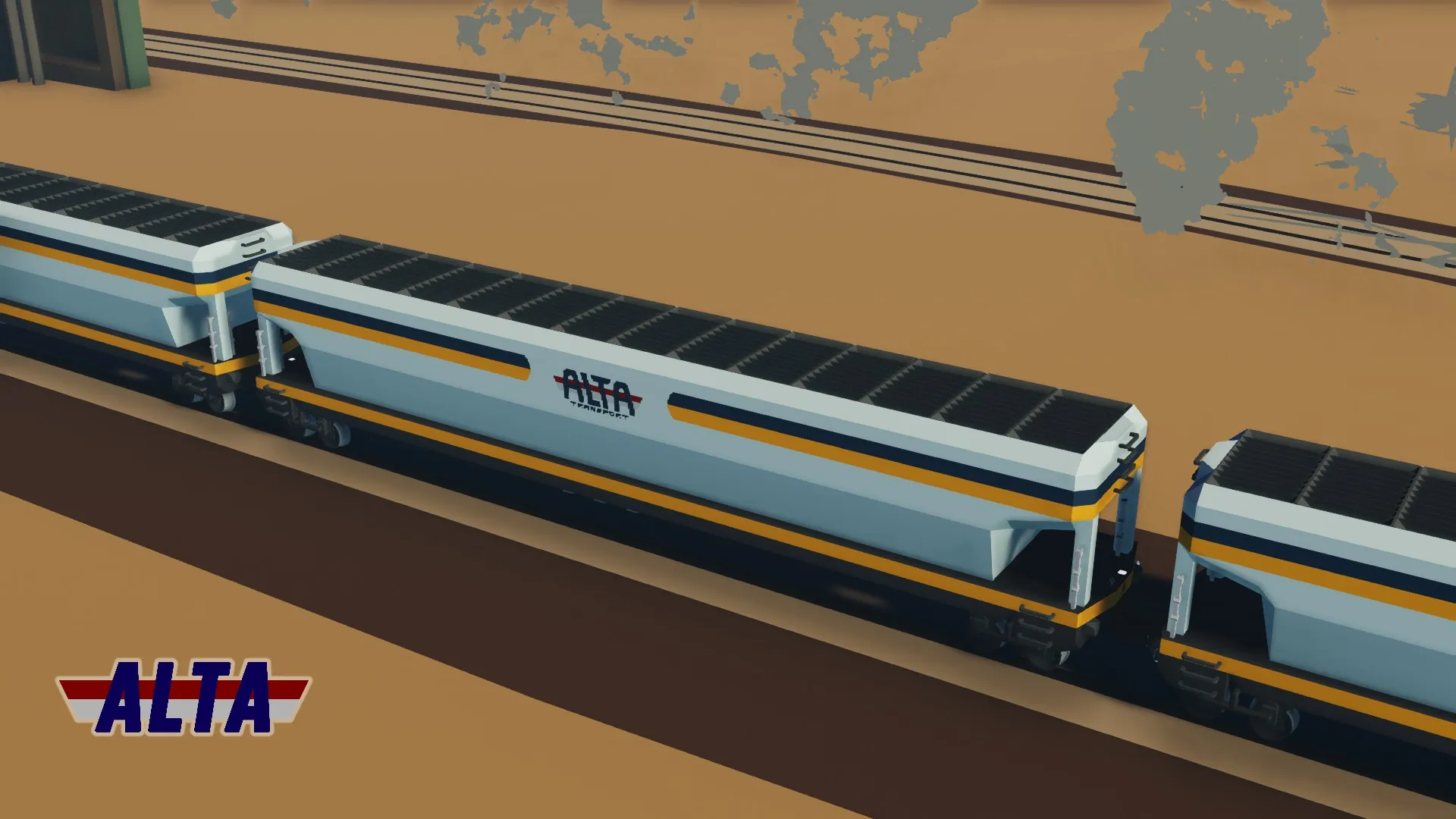 166,500 item bulk material hopper railcar owned by ALTA Corp. Featuring an underside discharge. For full functionality, the locomotive must be RCU Standard Compatible.