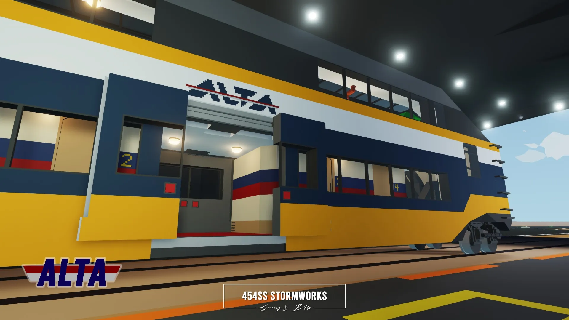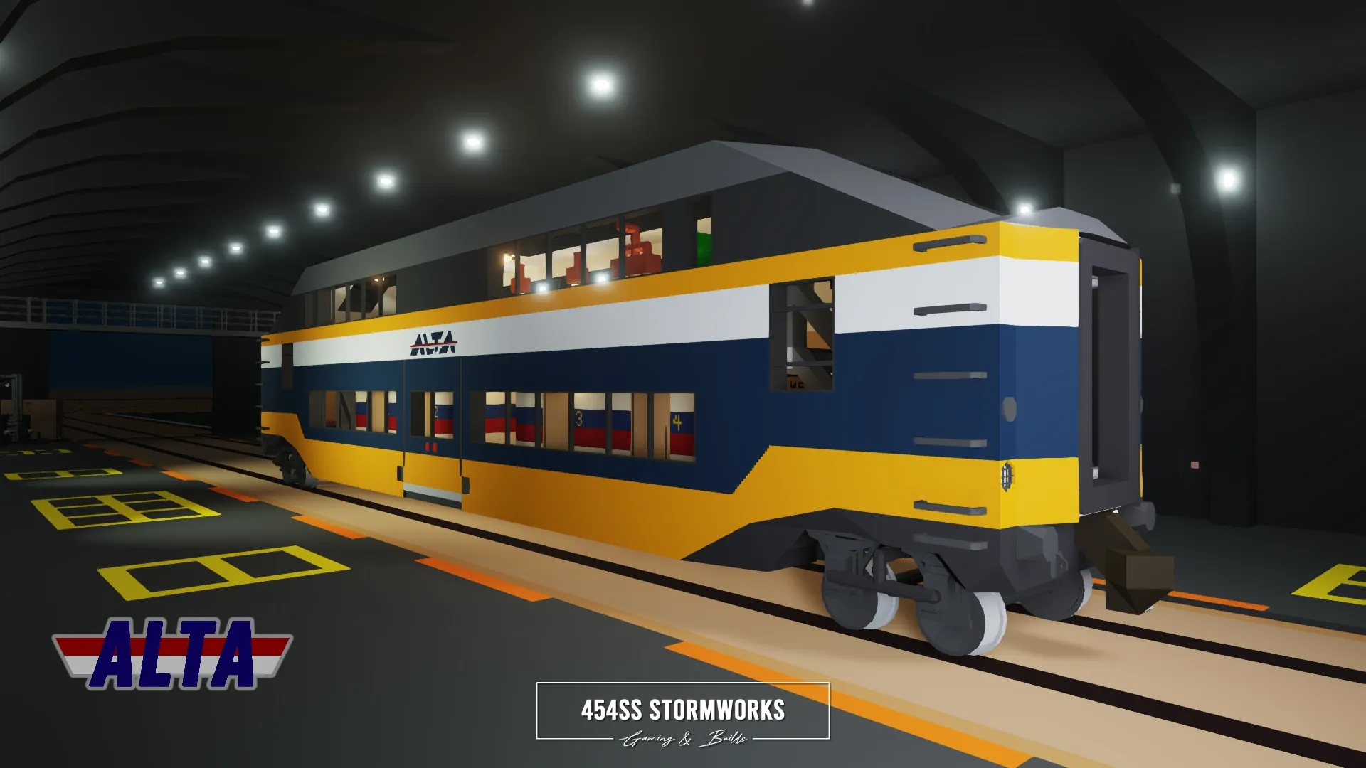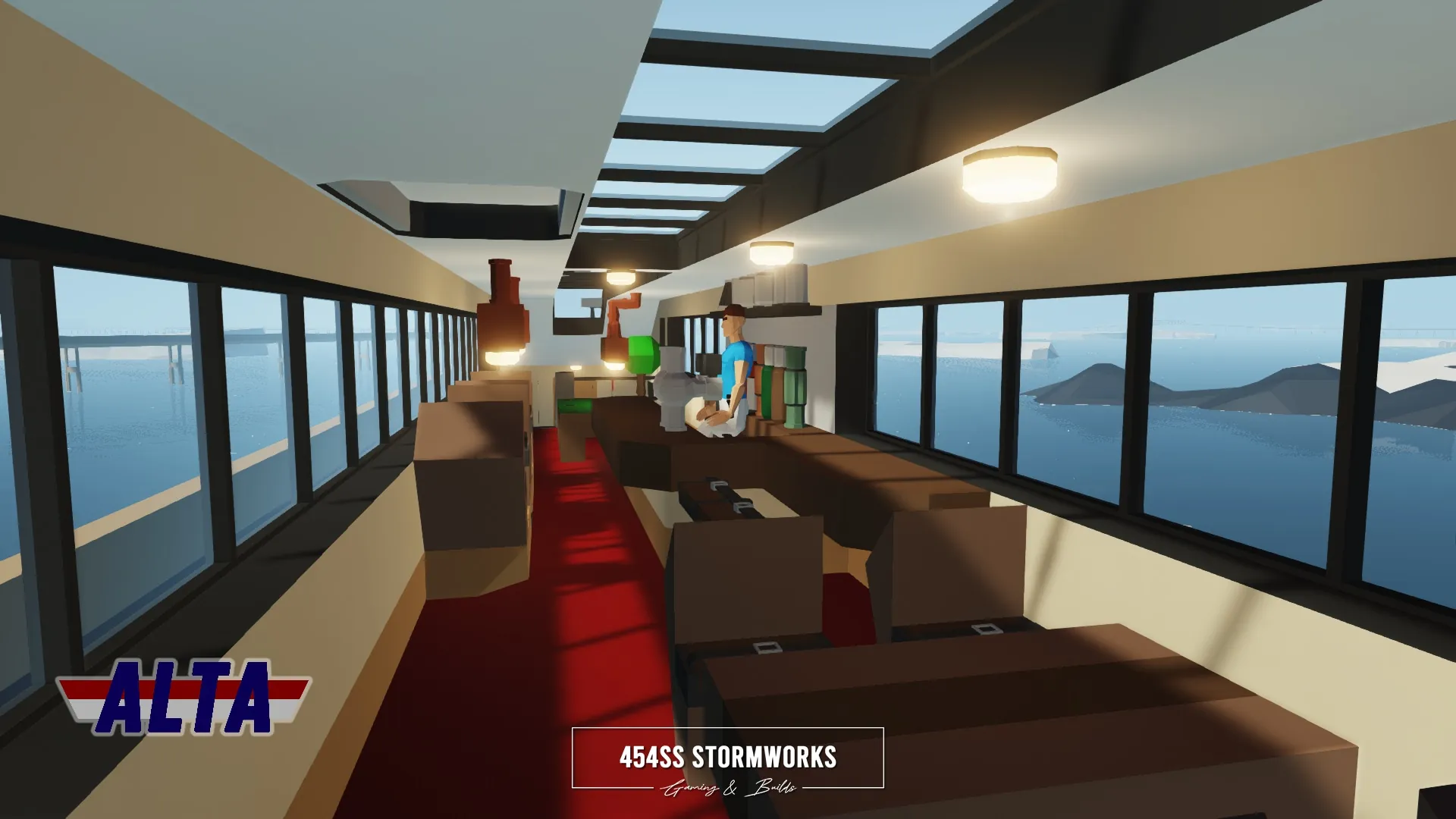 Luxury passenger lounge and sleeper railcar owned by ALTA Corp. Features a two-level design, with a large open space lounge on the top level and four cabins on the lower level. For full functionality, the locomotive must be RCU Standard Compatible.
