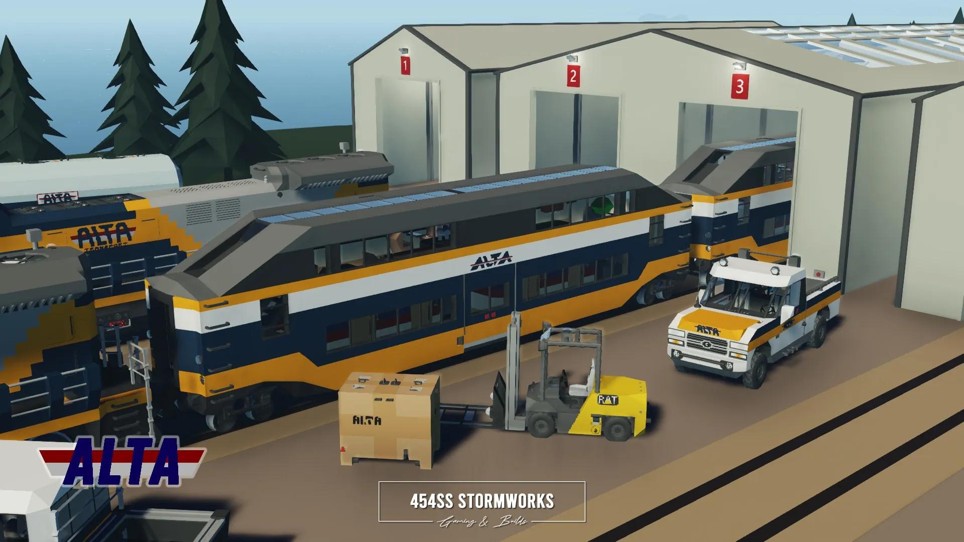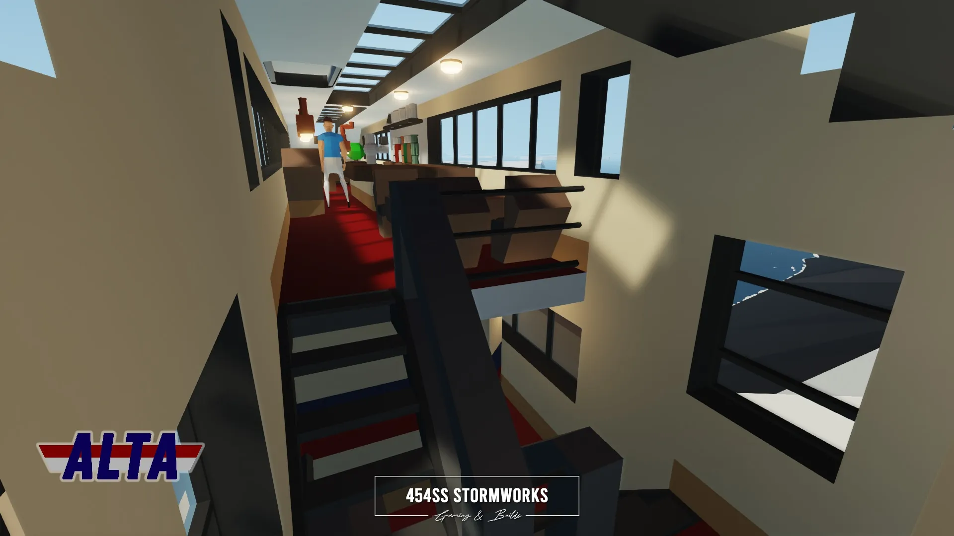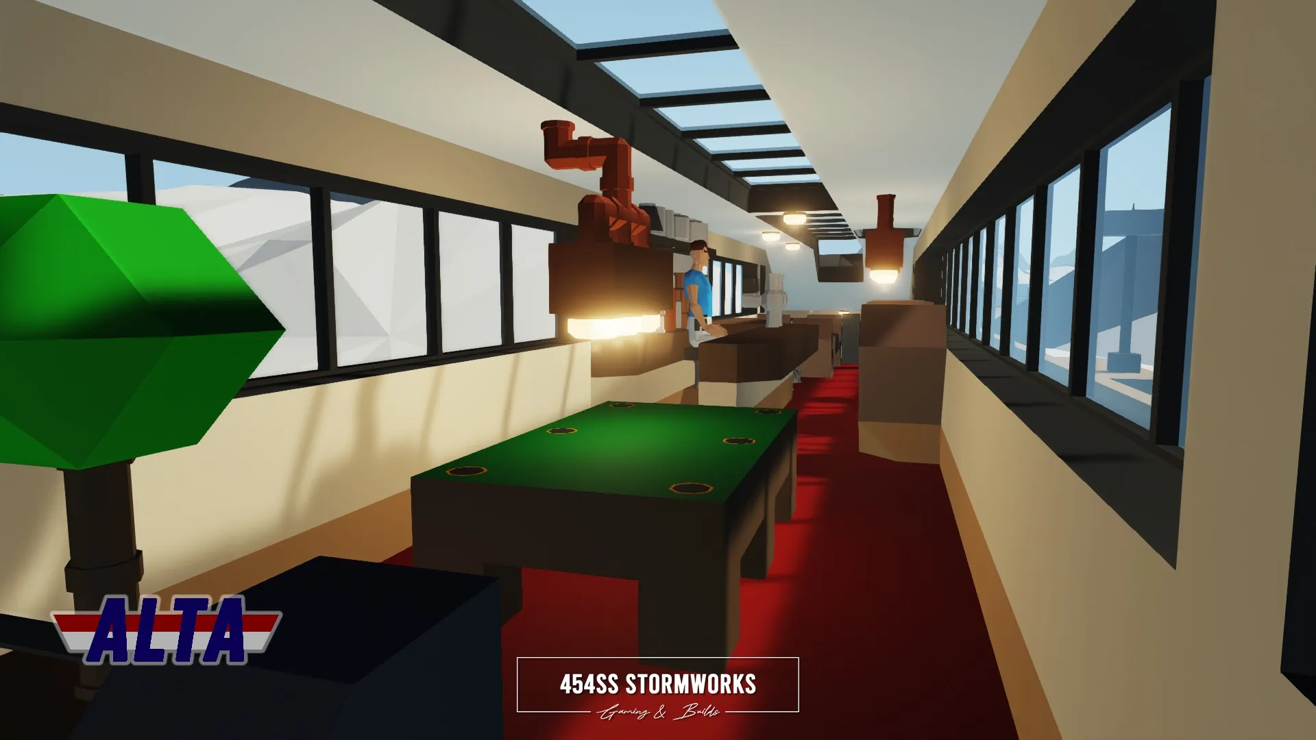 Luxury passenger lounge and sleeper railcar owned by ALTA Corp. Features a two-level design, with a large open space lounge on the top level and four cabins on the lower level. For full functionality, the locomotive must be RCU Standard Compatible.