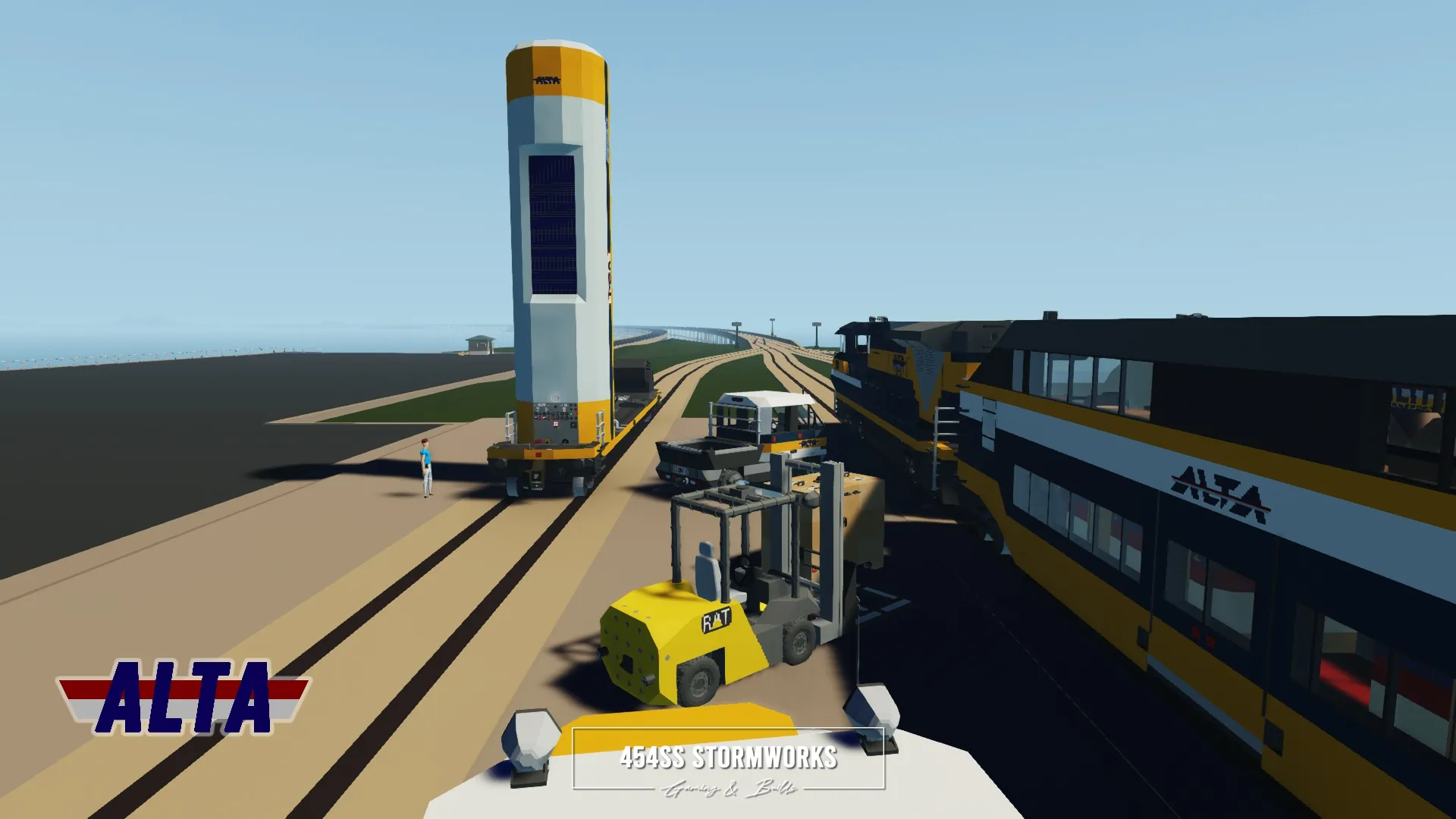 Mobile oil distillation railcar owned by ALTA Corp. Features a mobile distillation chamber, a larger generator for running the distillation process and a huge winch for 600m fluid transfer. For full functionality, the locomotive must be RCU Standard Compatible.