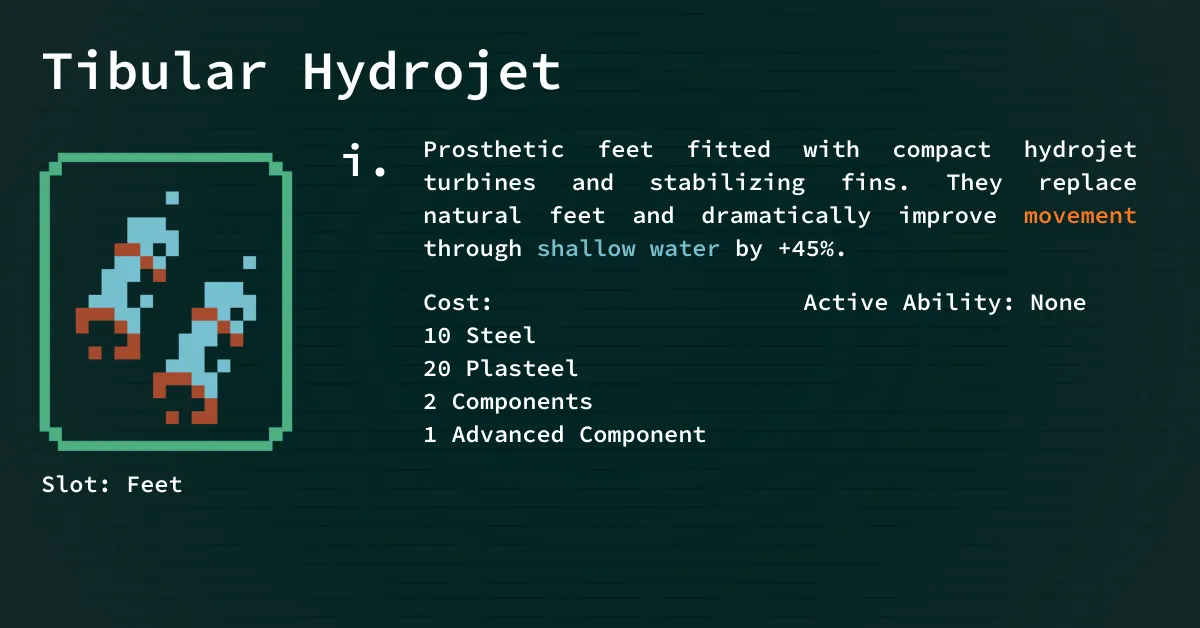 Tier 1 Cybernetics are meant to bridge the gap between Industrial Prosthetics and Spacer Bionics. Their aim is to provide utility over flat bonuses. These are rough translations of cybernetics from COQ and were balanced for Rimworld after a week of testing and improving.