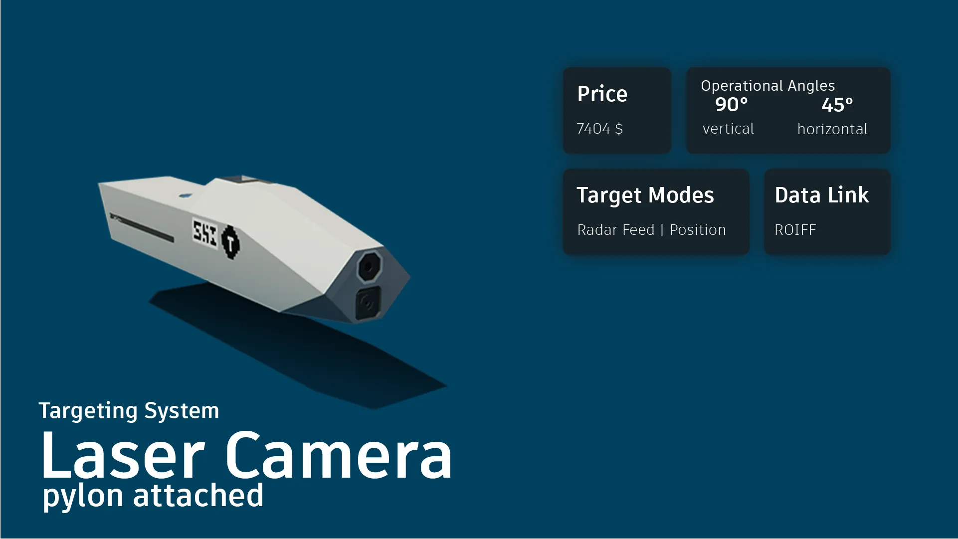 This is a fully functional External Targeting Pod designed to be mounted on fuselage or wing hardpoints. It is essential for precision ground attacks using laser-guided munitions.