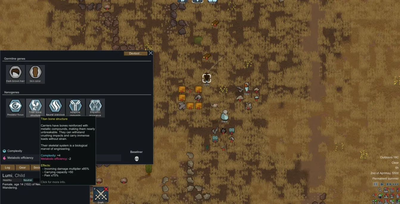 Xenoforge introduces 26 high-impact genes that let you create powerful colonists or if you want cripple them with the disabilities.