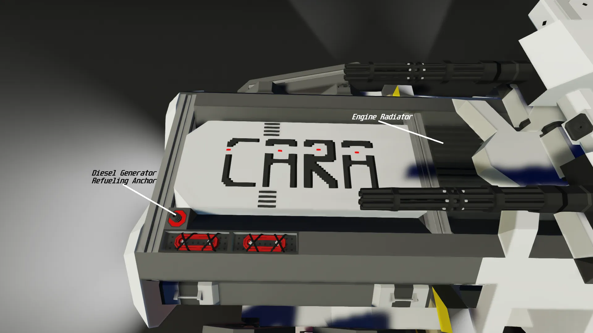 CARA comes equipped with two independent hardpoints and two dependent hardpoints. They are separated so you can either make CARA drop from inside of her seat, or inside of the vehicle you are airdropping her from.