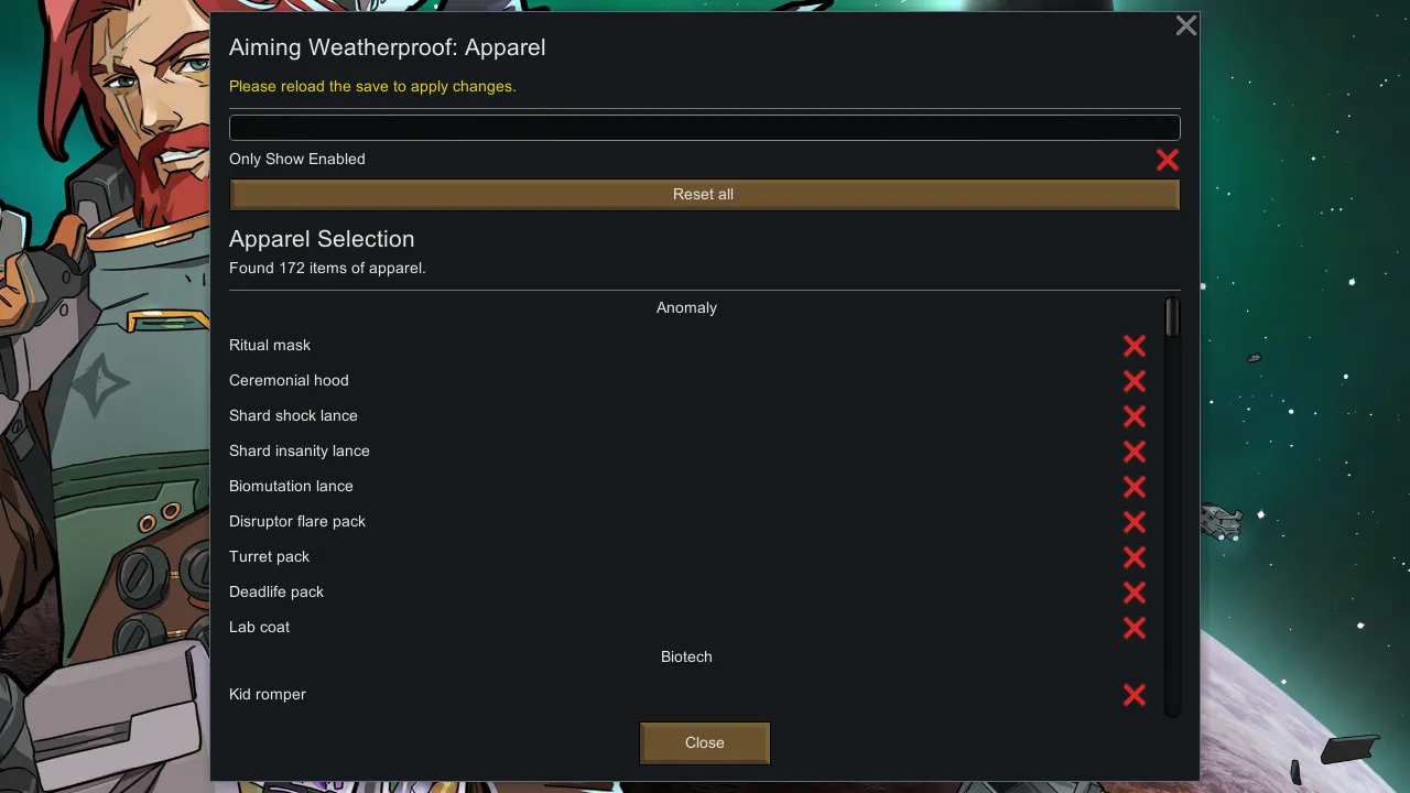 A: Use the [url=https://steamcommunity.com/sharedfiles/filedetails/?id=3618519491]Aiming Weatherproof: Implants[/url]. It allows you to apply this functionality to other implants using the mod option.