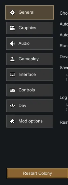 The Restart button is camping in the Settings menu like a slightly confused colonist.