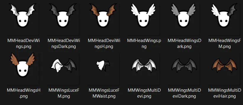- Head Wings (dark variant, hair color variant)