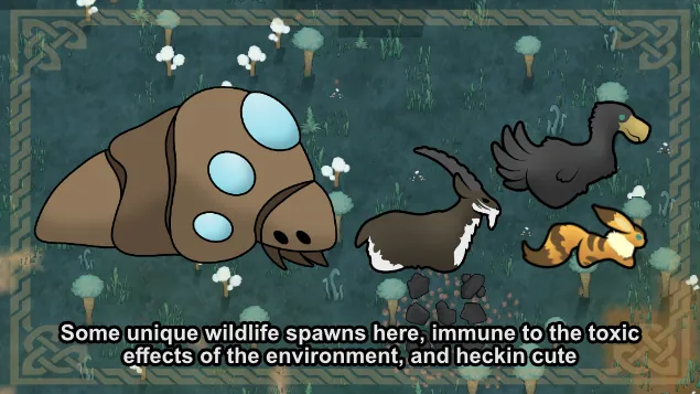 Beyond the biome itself there's some additional content included that'll make life a little easier in toxic biomes. There's some crops that produce food items that can be used to create meals that absorb toxic buildup, and some animals that are fully immune to toxic environments and capable of filling typical roles as mounts or pack animals.