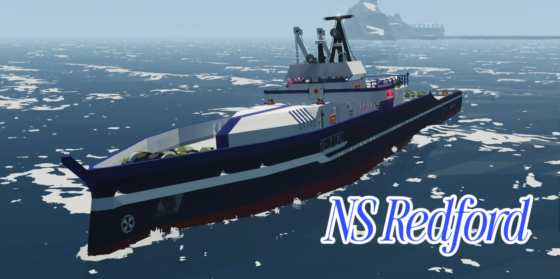 Presenting the NS Redford! My first ever large scale build. She's a multi-use vessel capable of repair missions, SAR missions, tow/salvage missions, light firefighting, or just general putting around if that's what you'd like. She is powered by a 4 boiler nuclear reactor of my design and capable of roughly 20 knots. She has a fully finished 1:1 interior so please explore around her!