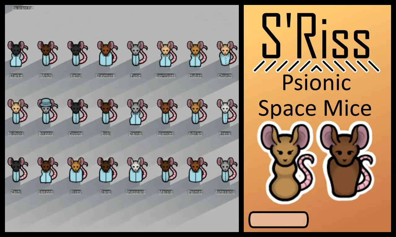 This mod adds a race of Psionic Space Mice to Rimworld.