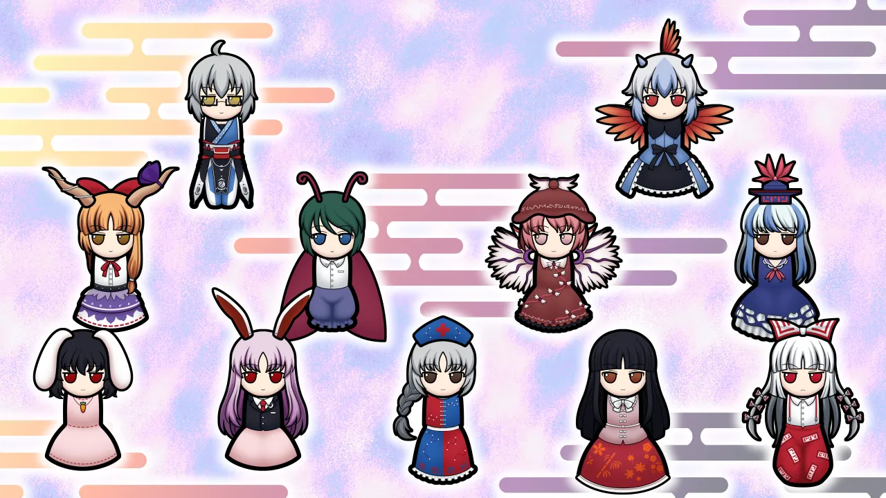 Wriggle Nightbug, Mystia Lorelei, Kamishirasawa Keine, Inaba Tewi, Reisen Udongein Inaba, Yagokoro Eirin, Houraisan Kaguya, Fujiwara no Mokou
