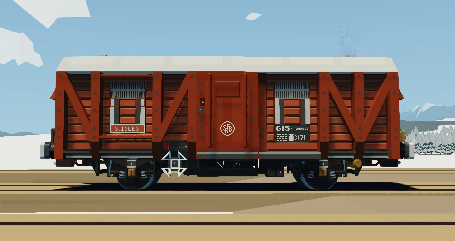 A simple 4-axle goods van originally designed by the GSIR in 1917. They were slowly phased out of service once bulk goods started being handled by container flats more frequently after the formation of the SRFB.