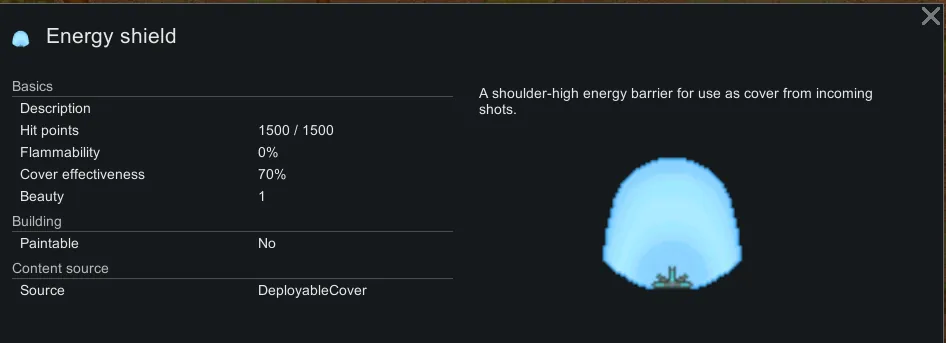 The portable energy emitter is lighter and can be thrown as far as a grenade. Upon landing it will spawn an energy shield based of the Covenant emplaced shield from Halo, which has much more health and provides a whopping 70% cover effectiveness while still being considered low cover. Can be built at the machining table after Shields research is completed.