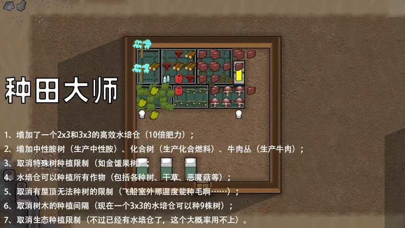 5、取消有屋顶无法种树的限制(飞船室外那温度能种毛啊……);