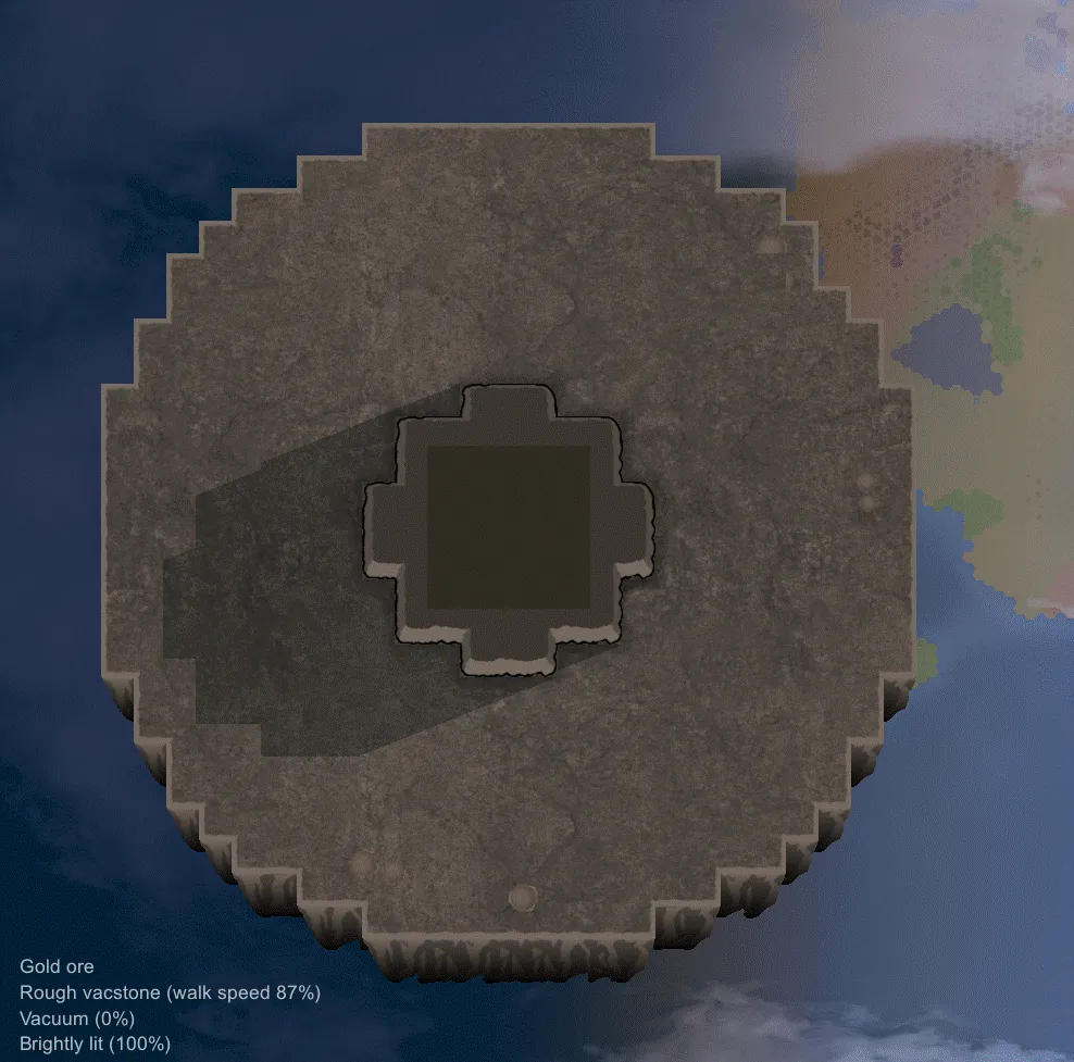 It now generates a circle block of vacstone with the rich resource inside it.