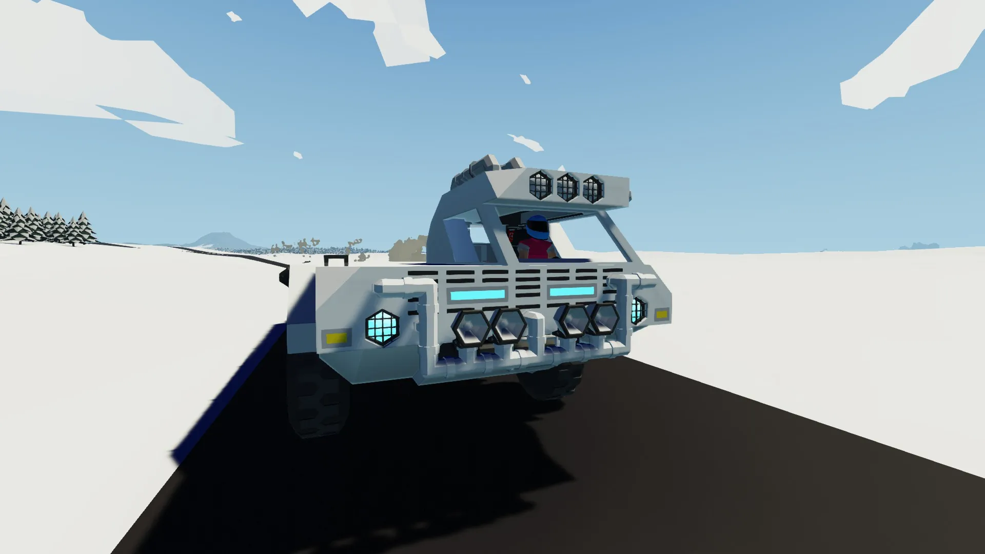 4-wheel axles, all-wheel drive, all-wheel steering, automatic transmission, cruise control with low-speed ramp, and adjustable engine power.