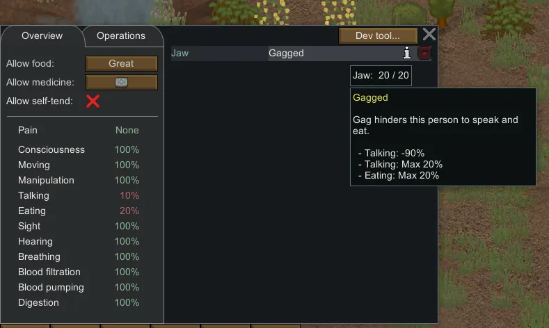 Wearable gags will be good addition to your slaves and BDSM or any other bondage roleplay. Gag blocks pawns abilities to talk and reduce feeding speed. You can craft gags from leather like any other clothes.