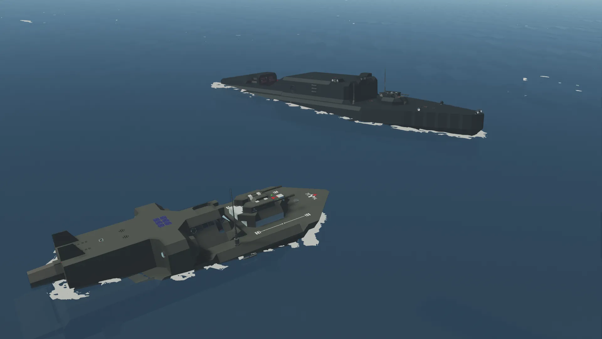 The JPGB-II is the Hammerheads bigger sister and the largest coastal ship the Onubloc Union had. Design of the Megalodon started after the JPGB-I's inefficiencies in combat started to show. The Megalodon was designed to replace the single manned hammerhead to patrol coasts and assist in conflict,. She is built low to avoid signature, and features a armored deck instead of the vurnerable cockpit of the hammerhead. Boasting two jet engines for propulsion, she is quick, but not as nimble as her smaller sister. (will be redoing the hammerhead soon) She makes up for it with a more stable run.