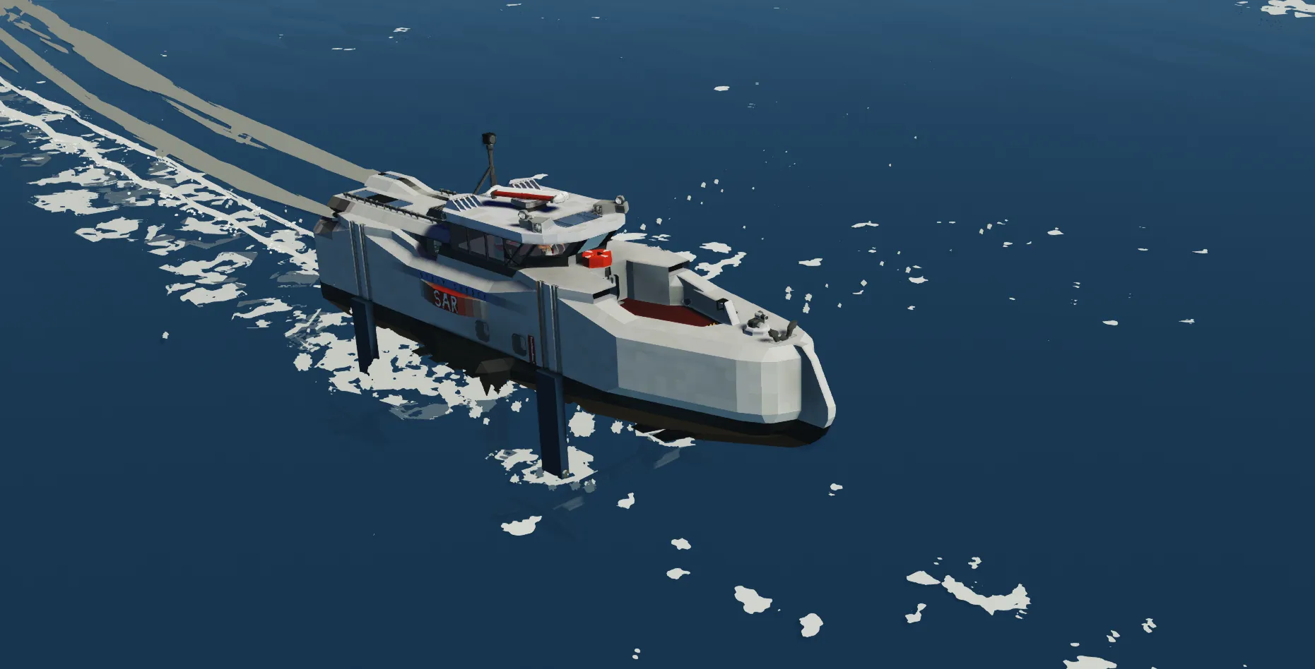 Storm Chaser | HYDROFOIL is a high-speed SAR-style hydrofoil built for slicing through open water with insane stability. In hydrofoil mode it can hit ~250 knots, riding above the chop for a smooth, controlled run even when the waves start getting ugly.