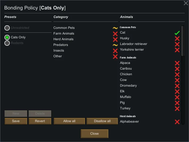 [*] Disallow bonding with certain animals