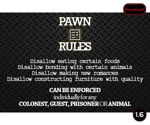 [url=https://steamcommunity.com/sharedfiles/filedetails/changelog/3024243615][img]https://img.shields.io/github/v/release/emipa606/PawnRules?label=latest%20version&style=plastic&color=9f1111&labelColor=black[/img][/url] | tags: colonist management