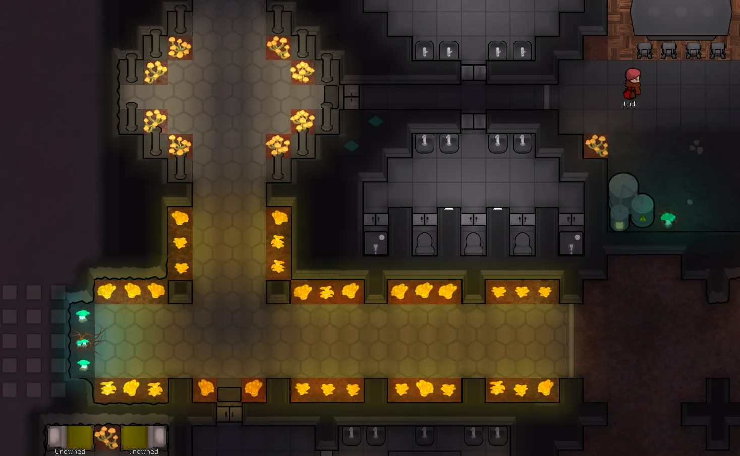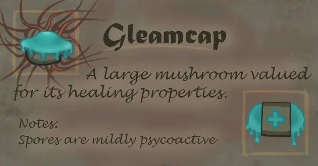 The mushrooms emit gleamcap smoke, a natural sedative. +8 mood but reduced consciousness. Builds up over time. Extended exposure can cause unconsciousness, leading to eventual death by starvation if not rescued.