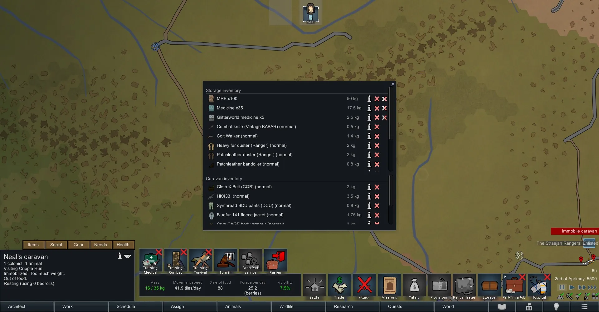 - When you enable a mod mid-save successfully, the game automatically disables the items for every kind of "allowed" stockpile, i.e. your uniform settings, your allowed food diet settings, medicine settings and stockpile.