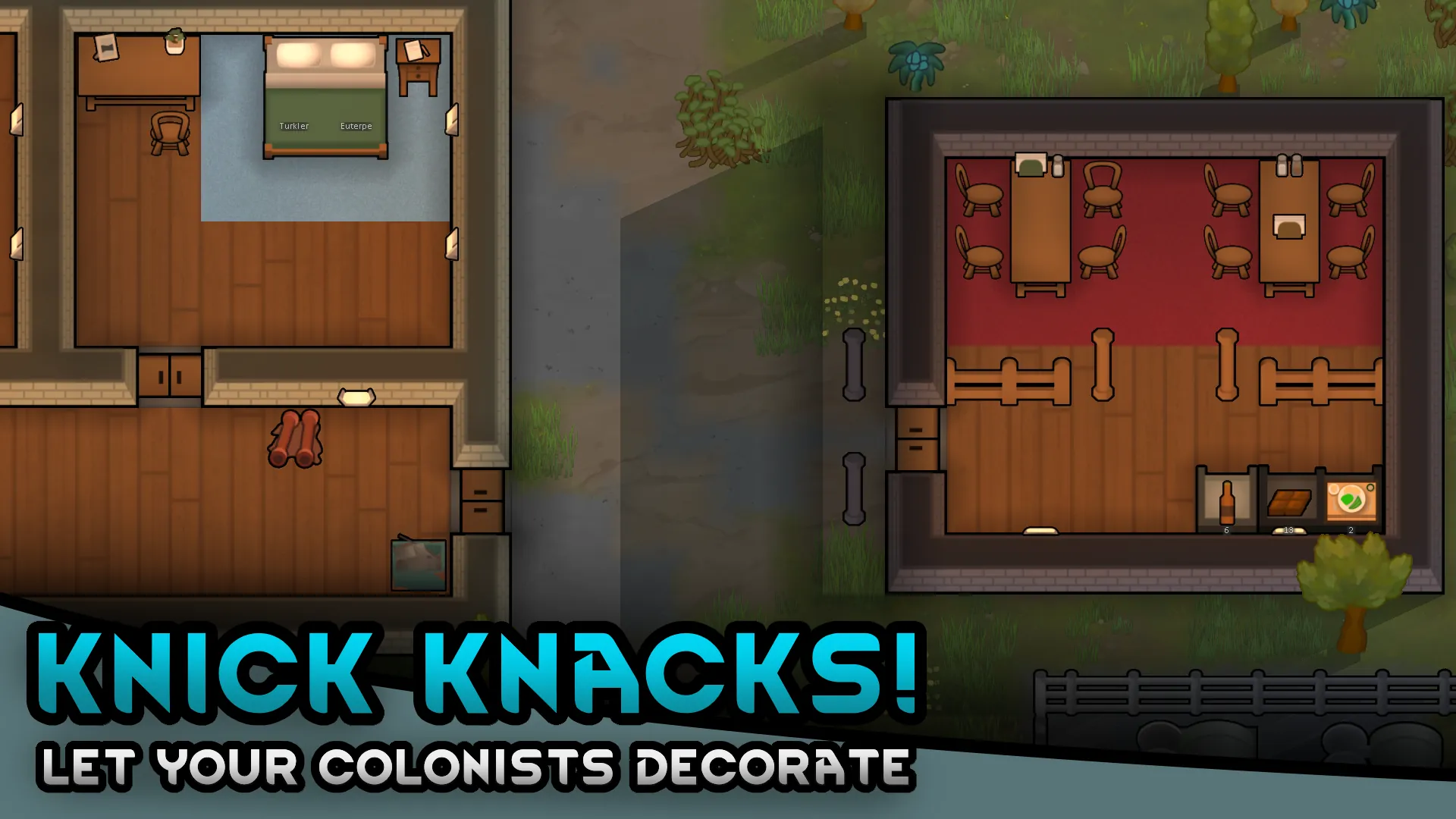 Knick Knacks adds various decorative items that your colonists can autonomously decorate their rooms with!