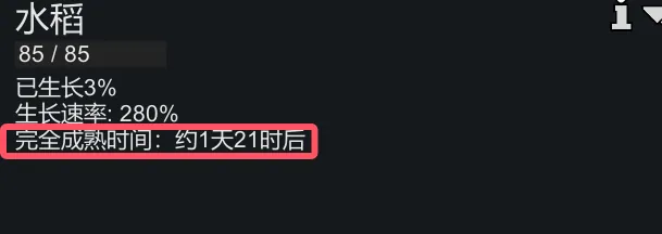 Q: Data source and calculation method? A: Based on internal game code. It represents the ideal growth time where the plant is affected only by fertility sensitivity and grows uninterrupted. The actual time will take longer due to various factors (temperature, light, environment). The display is hidden when the crop is fully grown or if the growth rate drops to 0.