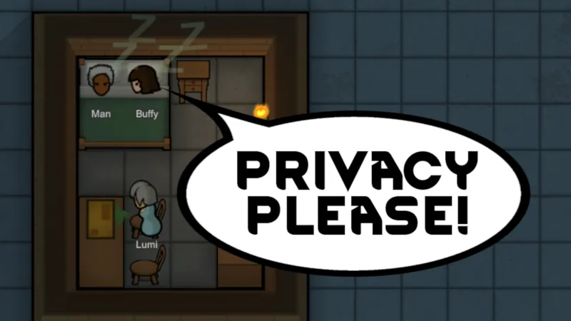 If you’ve ever tried building individual houses or private bedrooms, you’ve seen how little pawns care about personal boundaries. They’ll happily walk into someone else’s room to eat at a table, clean up, wander inside for no reason, or carry out non-urgent jobs, sometimes even waking people up.