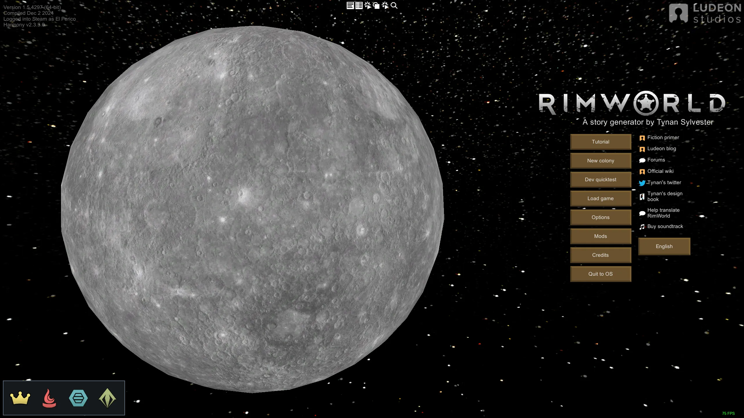 This highly customizable mod attempts to make RimWorld's main menu more dynamic by rendering a low poly planet in the main menu. It has no effect on gameplay, and won't impact your in-game performance at all. The scene stops automatically when you enter the game, and is re-initialized when you return to main menu. Low size of texture files also means minimal RAM consumption.