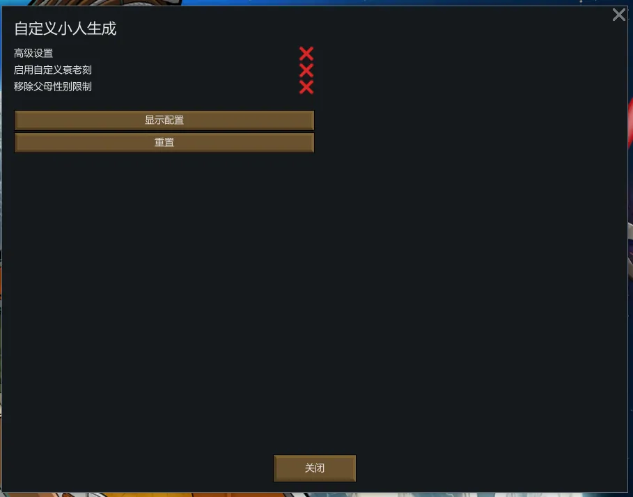 让你自定义小人的生成 是Custom Pawn Generation 的中文翻译,应该完全翻译。 你说为什么种族的还是英文,这玩意就是游戏认的名字,没有翻译也不可能有翻译。 由于是内核汉化所以不需要订阅原mod且不与原mod兼容!!!