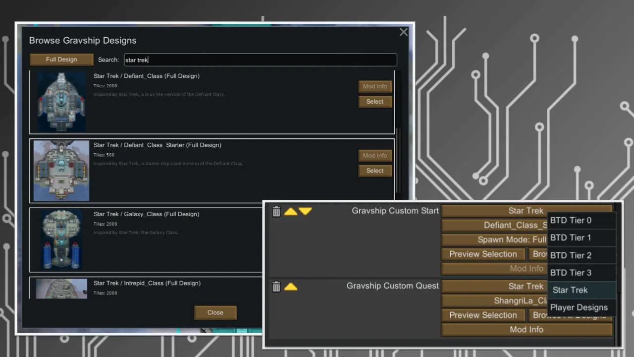 This is a Ship Pack for my other mod [url=https://steamcommunity.com/sharedfiles/filedetails/?id=3575162262]Gravship Blueprints[/url] that adds 9 Star Trek inspired ship designs. These ships are all constructed with vanilla buildings and I'll be releasing a variant of this ship pack with modded versions of the ships in the future.