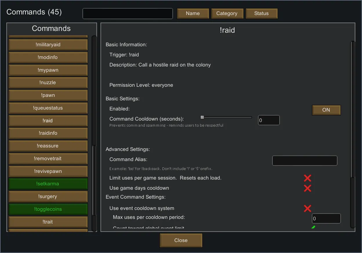 [*] Incident Control: Let chat trigger raids, quests, trade caravans, and other events