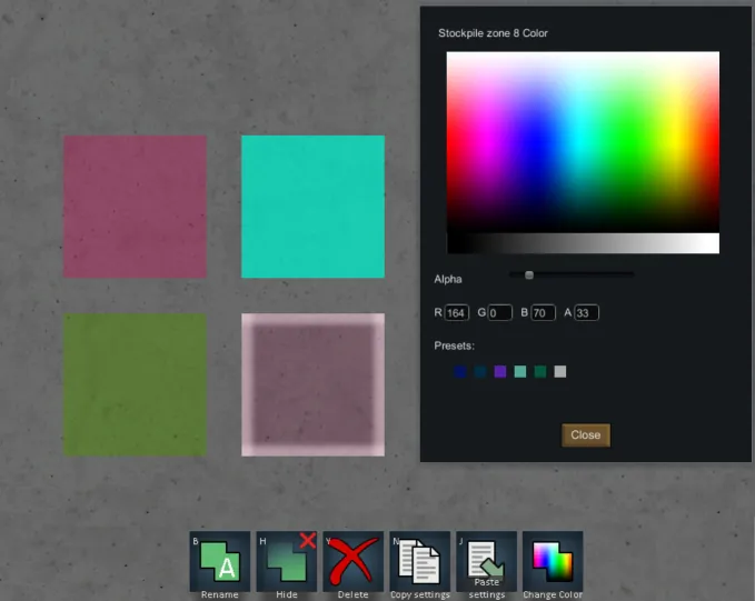 Adds the ability to recolor stockpiles and growing zones. Requires Harmony. Safe to add and remove to existing saves..
