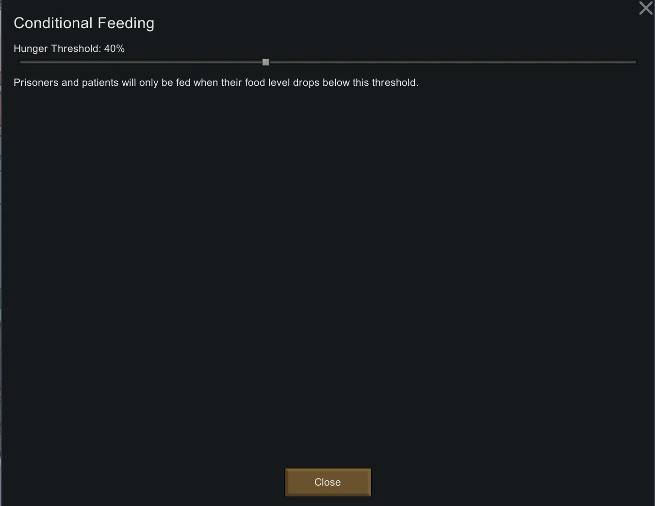 Prisoners and patients are only fed when their food level drops below a configurable threshold.
