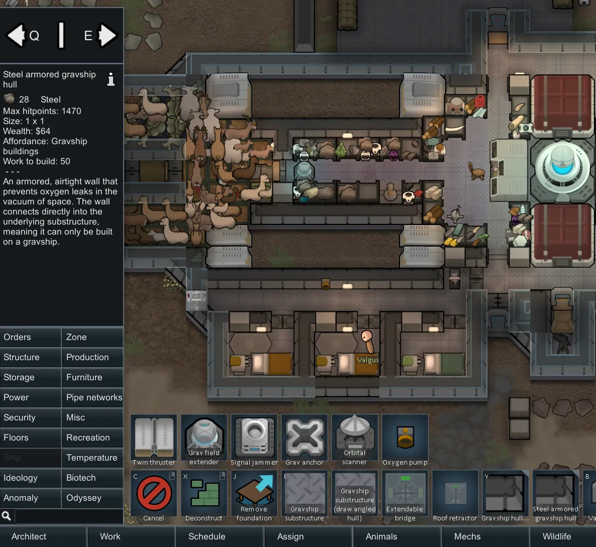 A simple clone of Odyssey's gravship hull walls, but with 175% max hitpoints. For balance, the new wall's costs are scaled similar to regular vs. fine stone tiles: 10x work cost, 4x resource cost.