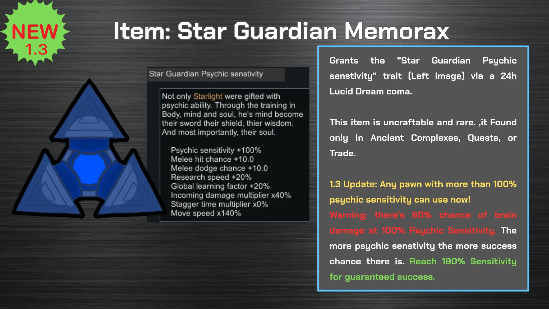 My personal project cooked just to integrate my own lore into Rimworld like others. A mod that added weapon scaling with psychic sensitivity, New Xenotype, New faction, Star Guardian's Ability and more!