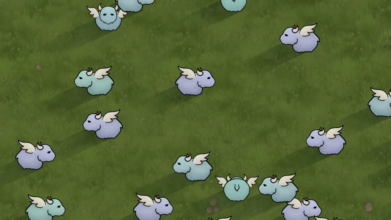 I redrew and scaled up the pygmy muffalo texture, added wings, because why not, and gave them some colour varition. Also changed the giant sculpture of the muffalo to match.